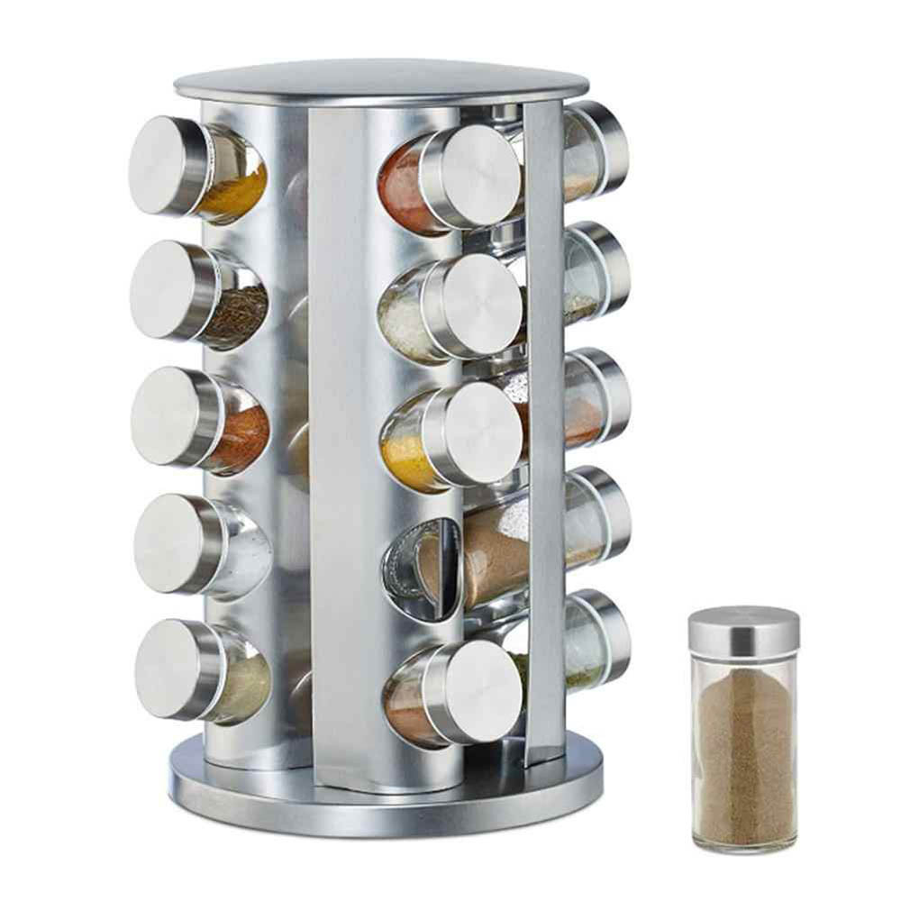 Otočný stojan na koření pro 20 kusů je praktickým řešením, jak mít všechna oblíbená koření přehledně a uspořádaně vystavená v kuchyni. Navzdory kompaktní velikosti nabízí dostatek úložného prostoru a elegantní nerezové provedení ozvláštní kuchyňskou linku.