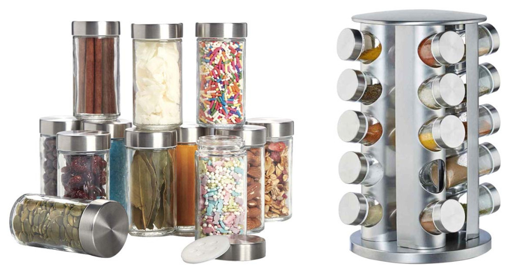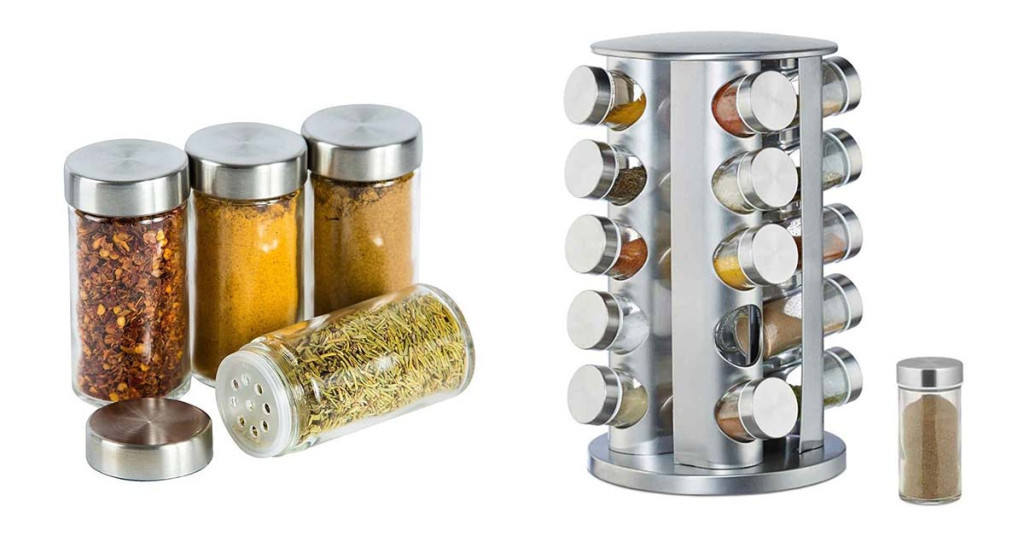 Prostorově úsporný stojan má průměr jen 22 cm, ale je stabilní a snadno otočný. Skleněné dózičky mají objem 80 ml, ideální pro většinu koření. V balení najdete vše potřebné.