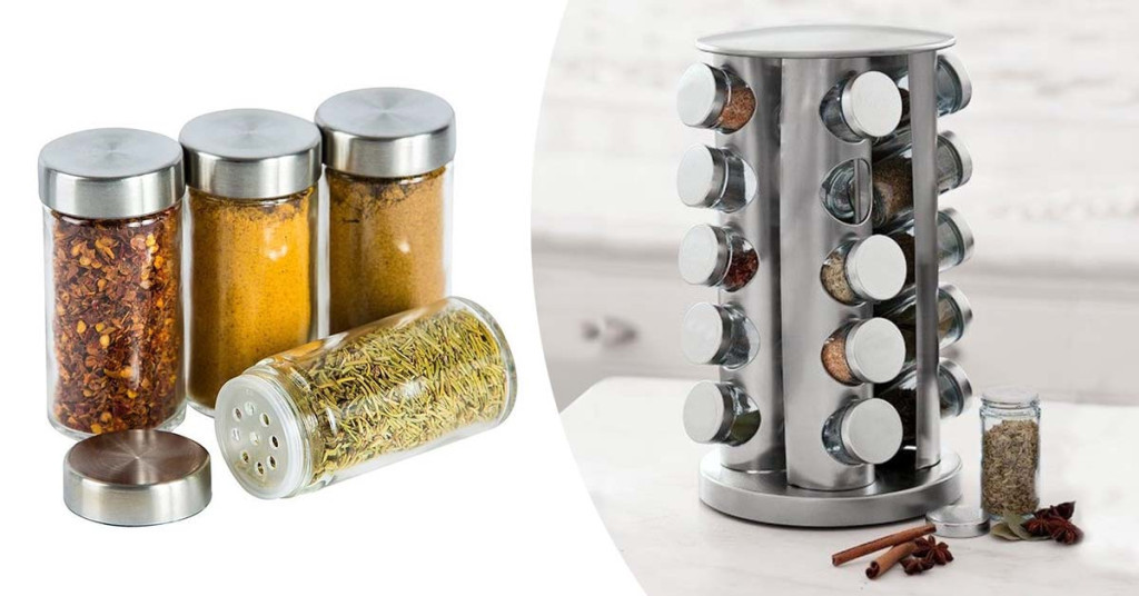 Otočný design umožňuje během vaření jediným pohybem dosáhnout požadované koření. Přehledné skleněné dózičky ukazují obsah, takže přesně víte, co a kolik máte.