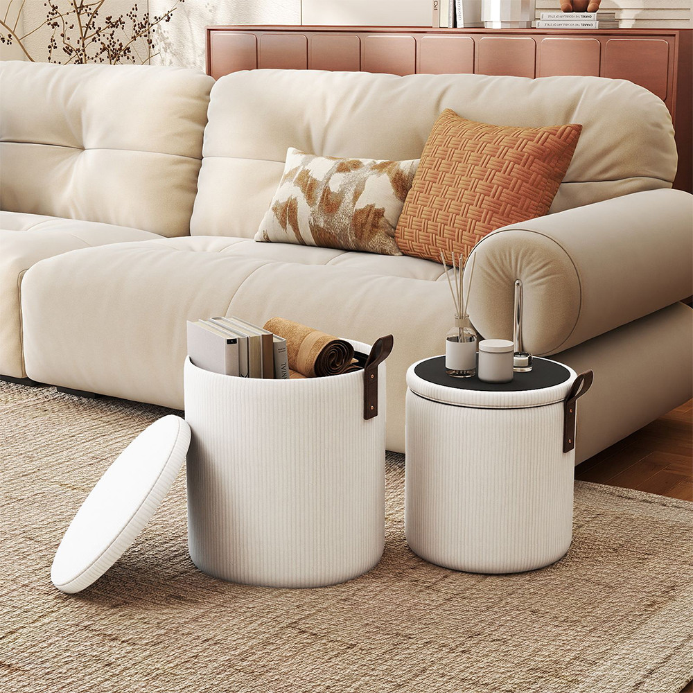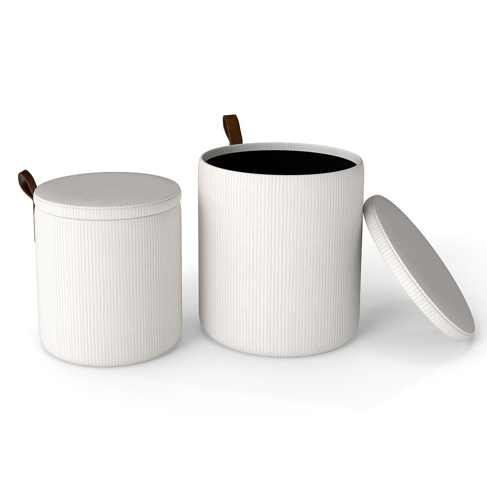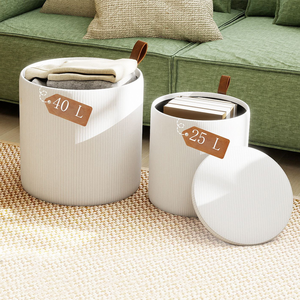 Dva otomanové úložné boxy různých velikostí jsou ideálním řešením pro rychlé vytvoření sezení a skrytí dek, polštářů nebo jiných drobných předmětů.