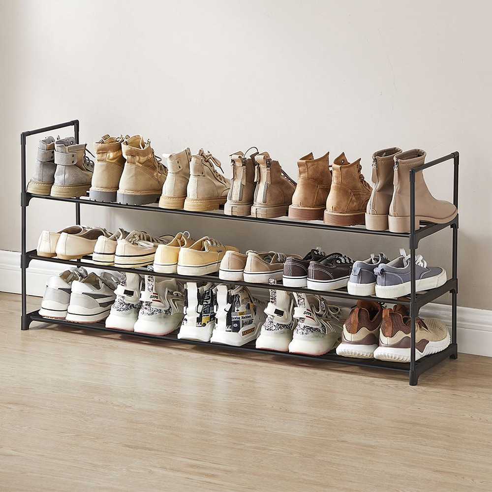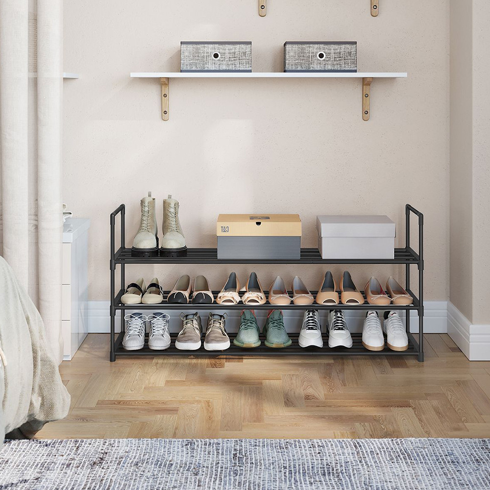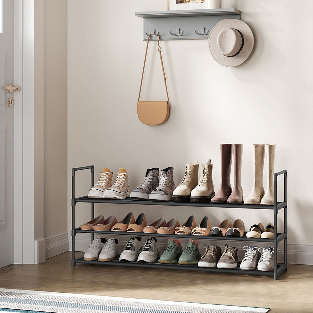 Tento 3-podlažní botník pojme až 18 párů bot, což vám umožní snadno organizovat vaši obuv doma. Jeho kompaktní rozměry (116 × 30 × 55 cm) znamenají, že se vejde i do malých prostorů, přičemž poskytuje dostatek úložného prostoru.