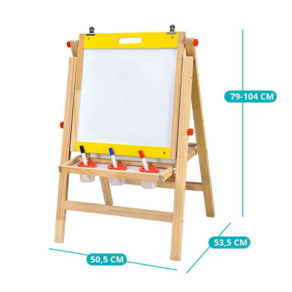 Sada obsahuje bílou tabuli, černou tabuli a roli papíru. Děti mohou svobodně kreslit na povrchu tabule na křídy, zatímco bílá magnetická tabule produkuje méně prachu a může být také použita pro magnetické hry. Přiložená role papíru nabízí další příležitosti k malování pro děti.