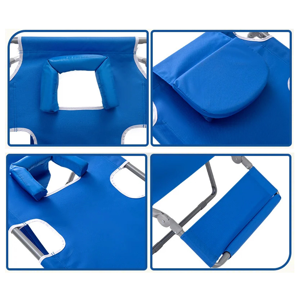 Záda jsou sklopná do několika poloh a opěrka nohou je k dispozici ve dvou polohách, takže snadno najdete svou oblíbenou pozici. Otvory na obličej a ruce v poloze na břiše vám pomohou, abyste nemuseli nepohodlně otáčet hlavou, pokud chcete takto odpočívat.