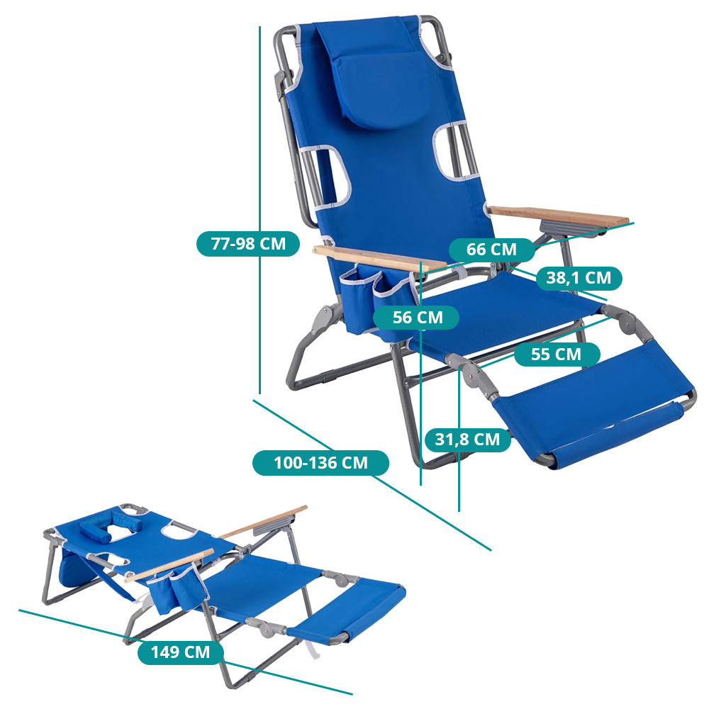 Pokud hledáte pohodlné sedací a ležící místo na pláž, kemp nebo jen na terasu, toto křeslo je dobrým společníkem. Můžete v něm sedět při rozhovorech, lehce se naklonit na krátký spánek nebo si úplně natáhnout pro opalování.
