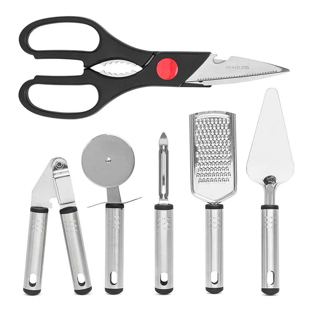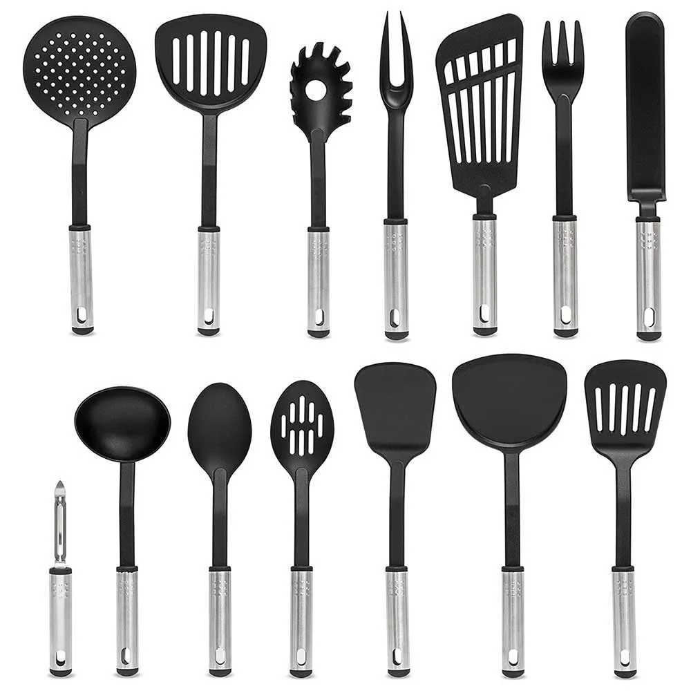 Kuchyňské nástroje jsou vyrobeny z nerezové oceli, silikonu a plastu, což zaručuje, že se snadno čistí při mytí rukou. Ergonomický design zajišťuje pohodlné použití, zatímco elegantní vzhled se hodí do každé kuchyně.