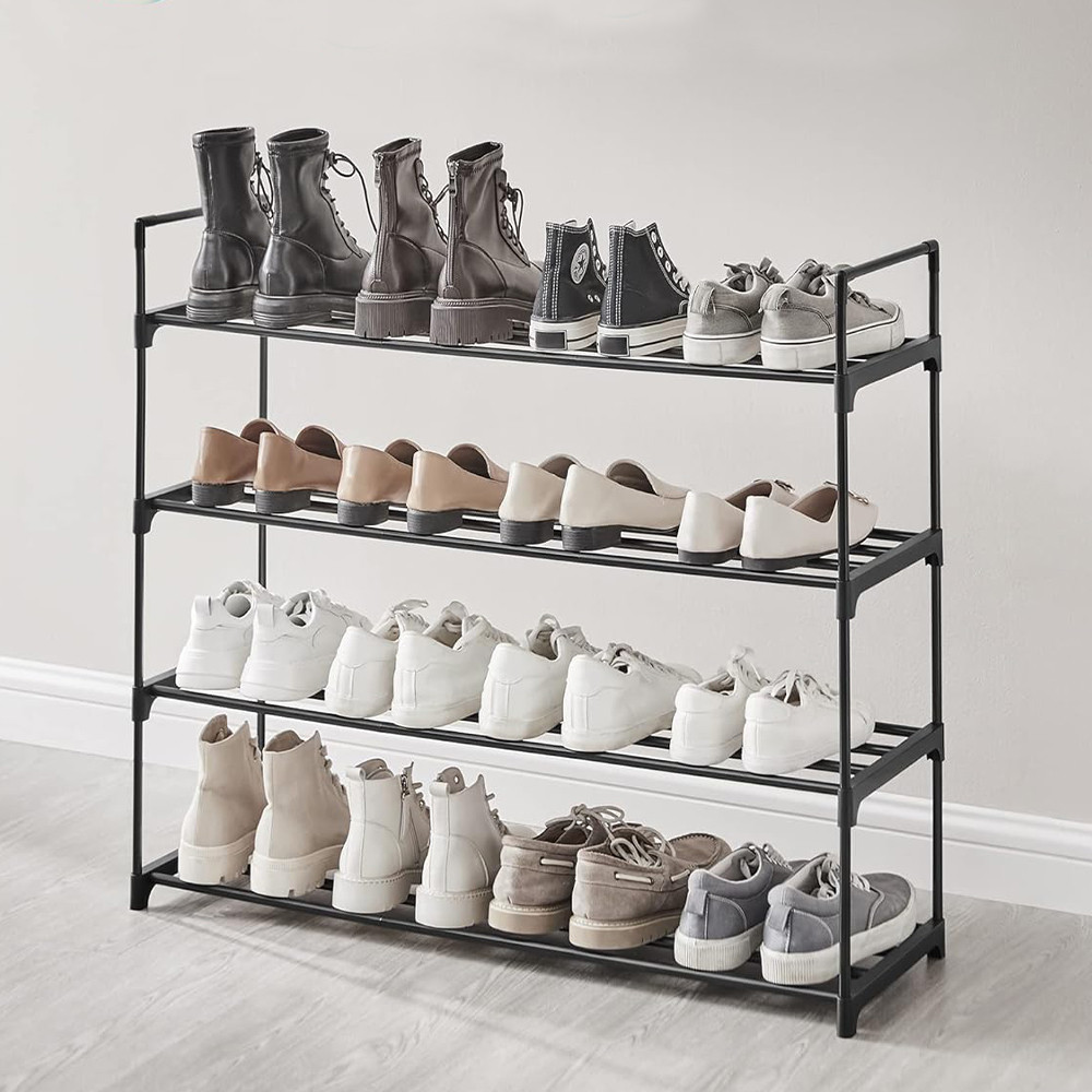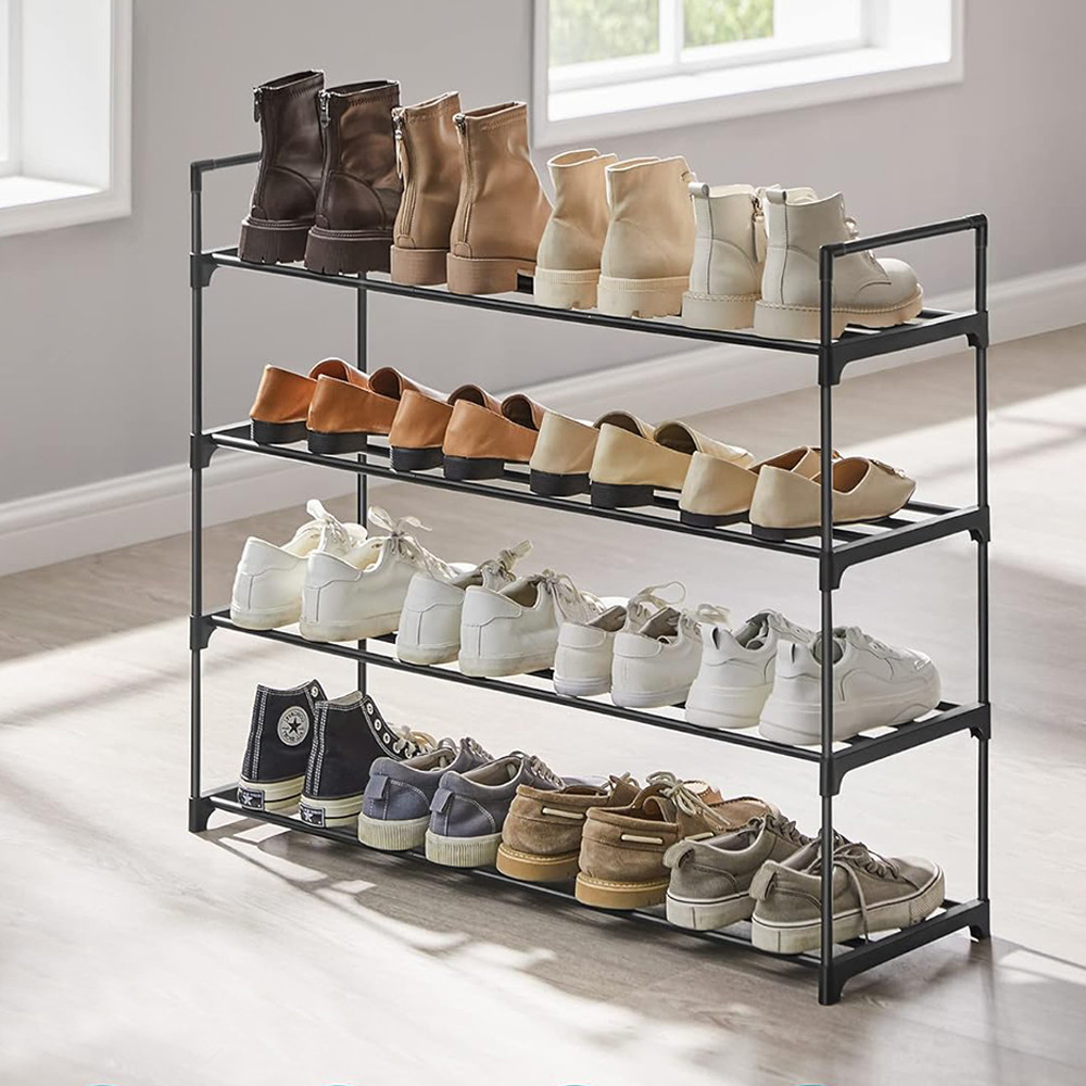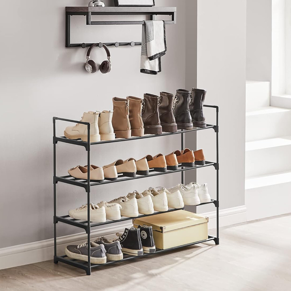 Se 4-patrovým kovovým regálem na boty snadno najdete místo pro 16-20 párů obuvi. Je skvělý pro použití na chodbě, ve skříni nebo ložnici a jeho elegantní černý vzhled se hodí do každého prostoru.