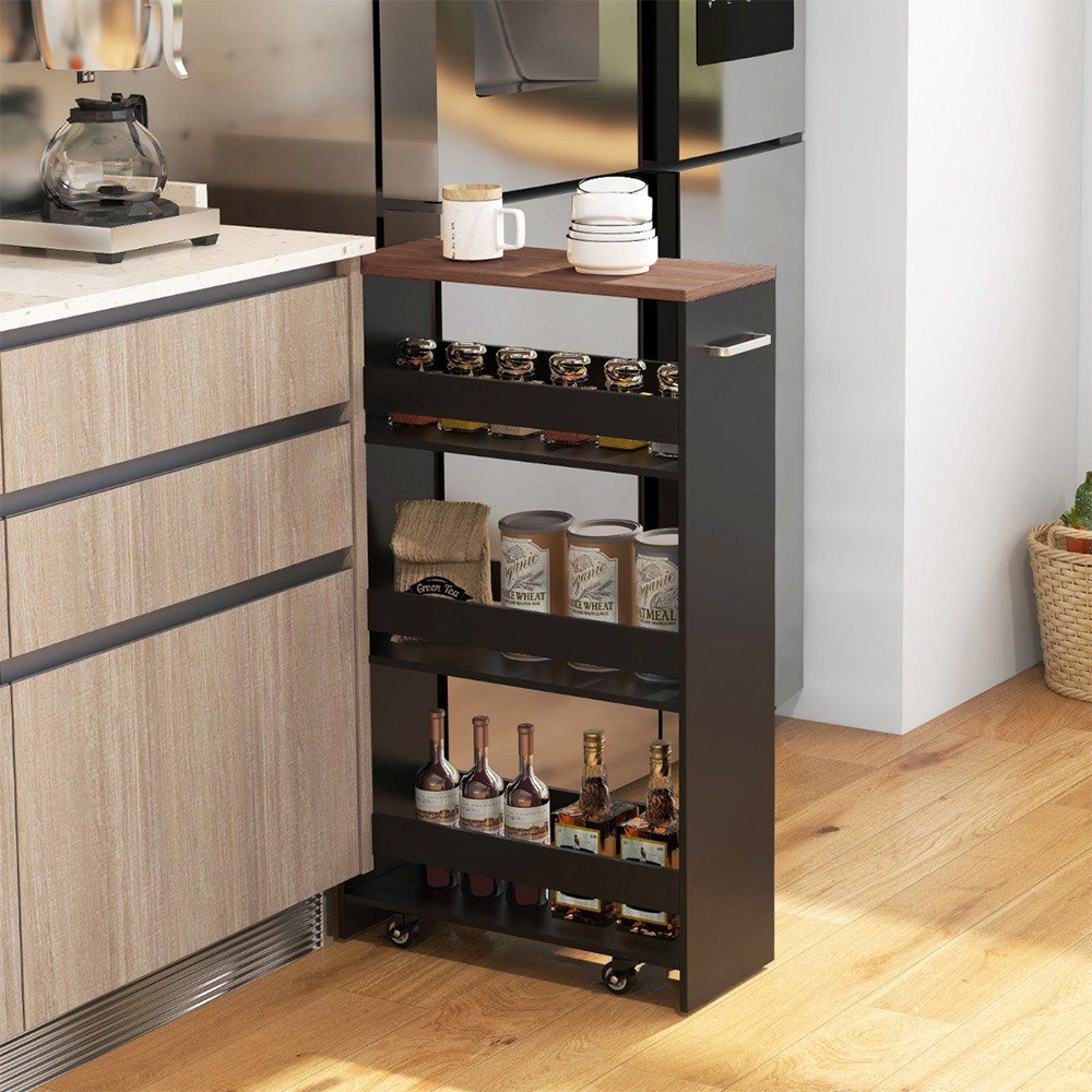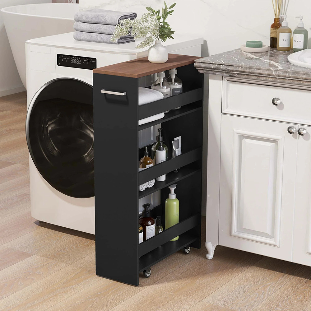Pokud hledáš úložné místo v úzkých prostorech mezi pračkou a pracovním pultem, nebo v malé koupelně, tento úzký vozík je právě pro tebe. Zabírá málo místa, ale přesto nabízí vícepodlažní upravený prostor pro každodenně používané předměty.