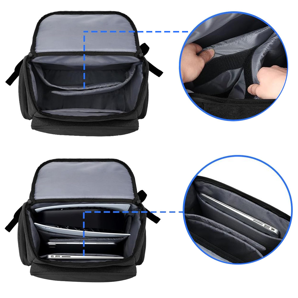 Více přihrádek umožňuje uspořádat notebook, knihy, příslušenství nebo ovladače. Polstrovaný interiér chrání citlivé předměty před poškrábáním a nárazy.