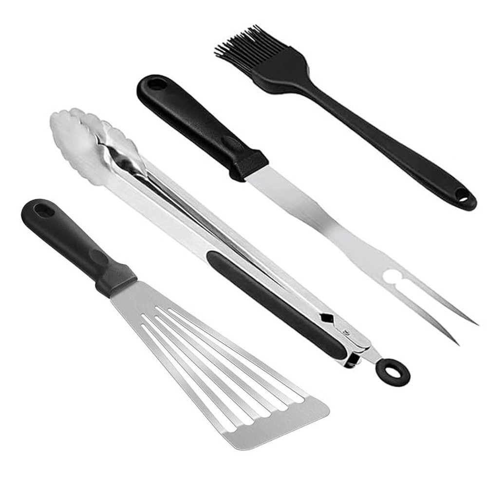 Ať už grilujete maso, zeleninu nebo vejce – sada obsahuje špachtle, kleště, injekční stříkačku, teploměr uvnitř masa a kroužky na vejce. Čištění usnadňují přibalené škrabky a houbičky.