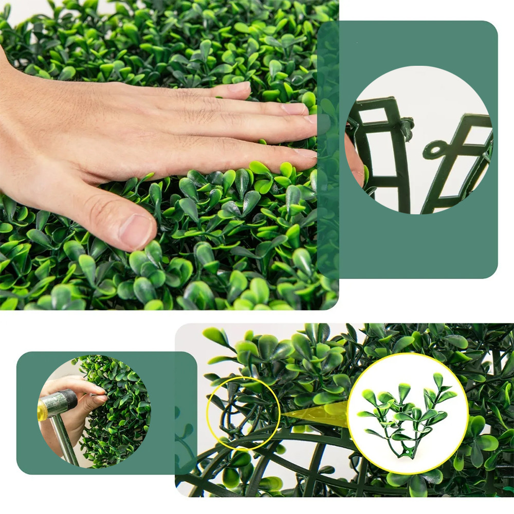 Panely do sebe snadno zapadají a jejich sestavení zabere jen několik sekund. Přiložené upevňovací prvky umožňují stabilní uchycení na plot, zeď nebo zábradlí.