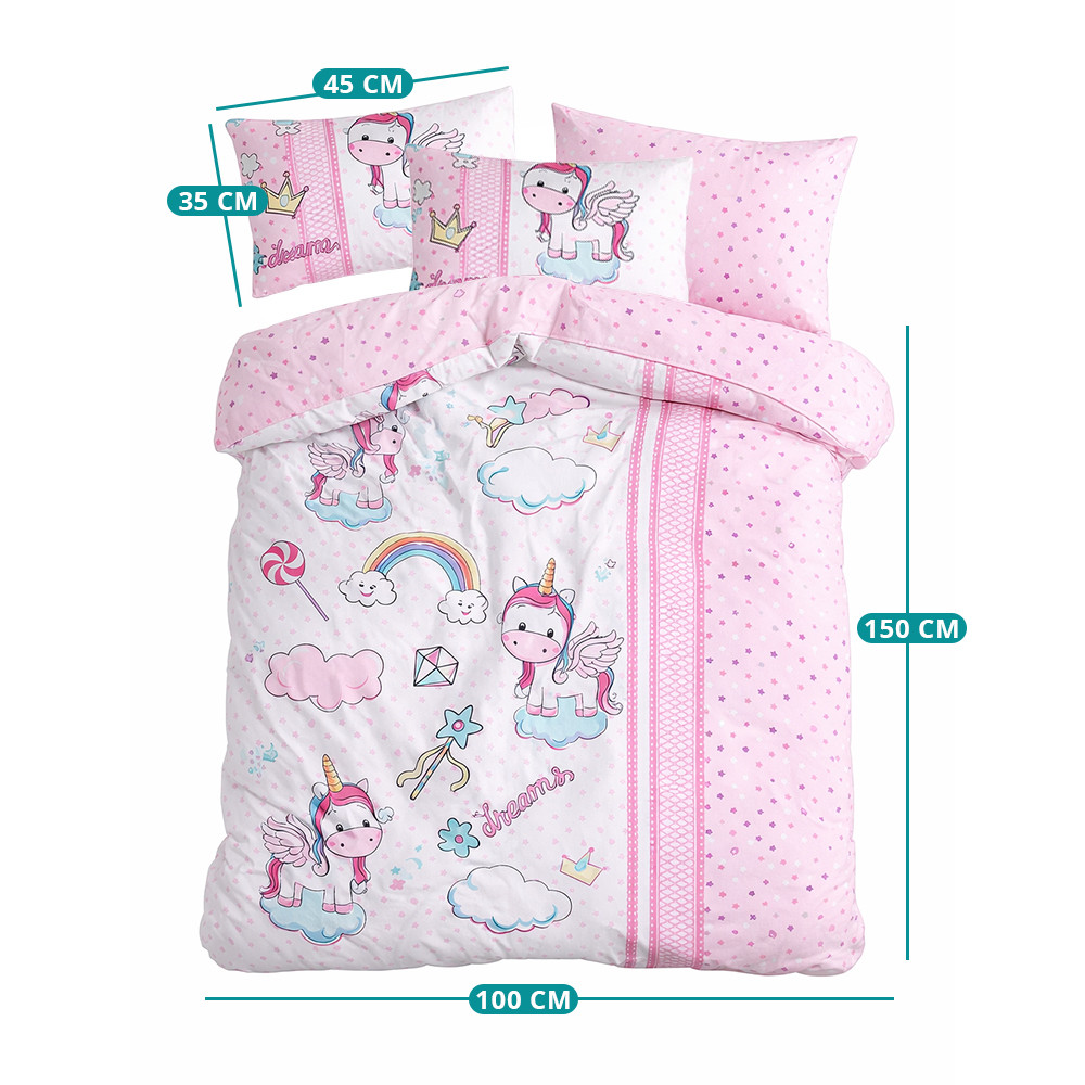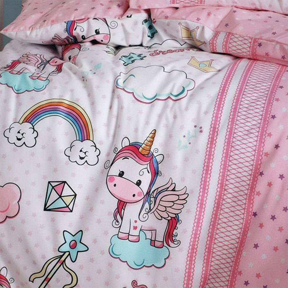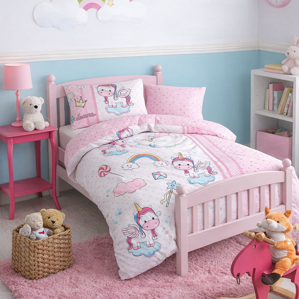 Roztomilé, hravé motivy dodávají povlečení přátelský charakter, což z něj činí nejen praktický, ale také dekorativní prvek v dětském pokoji. Živost vzorů je zachována díky odolnému textilnímu tisku.