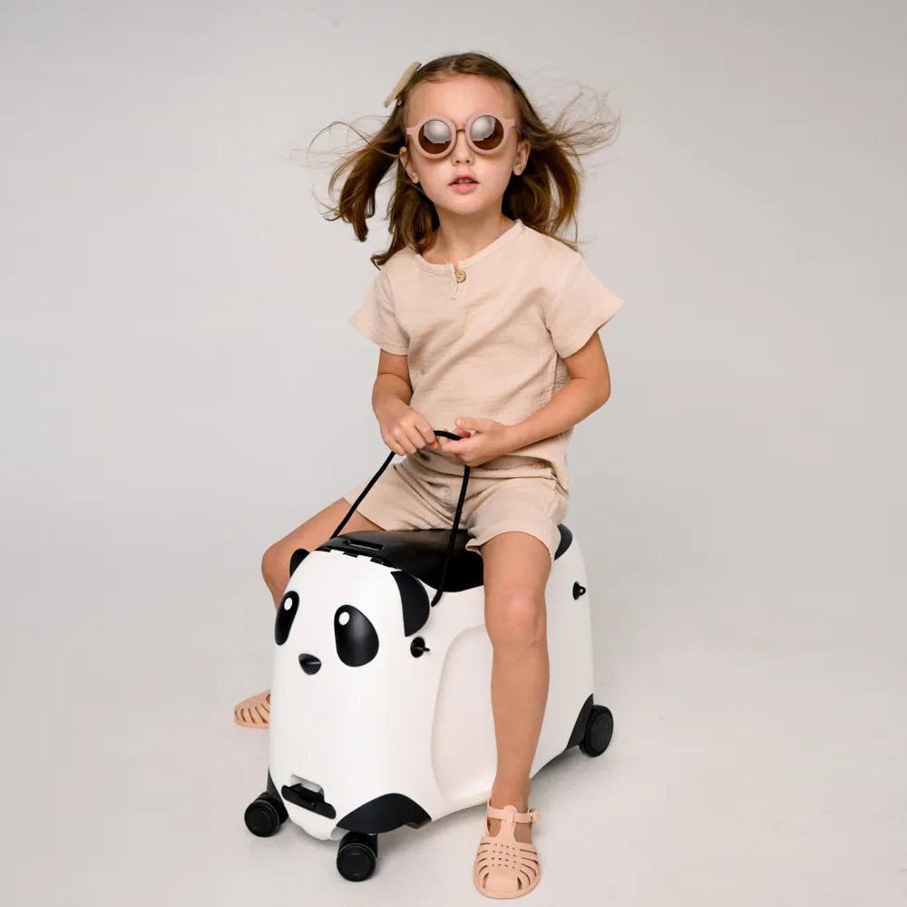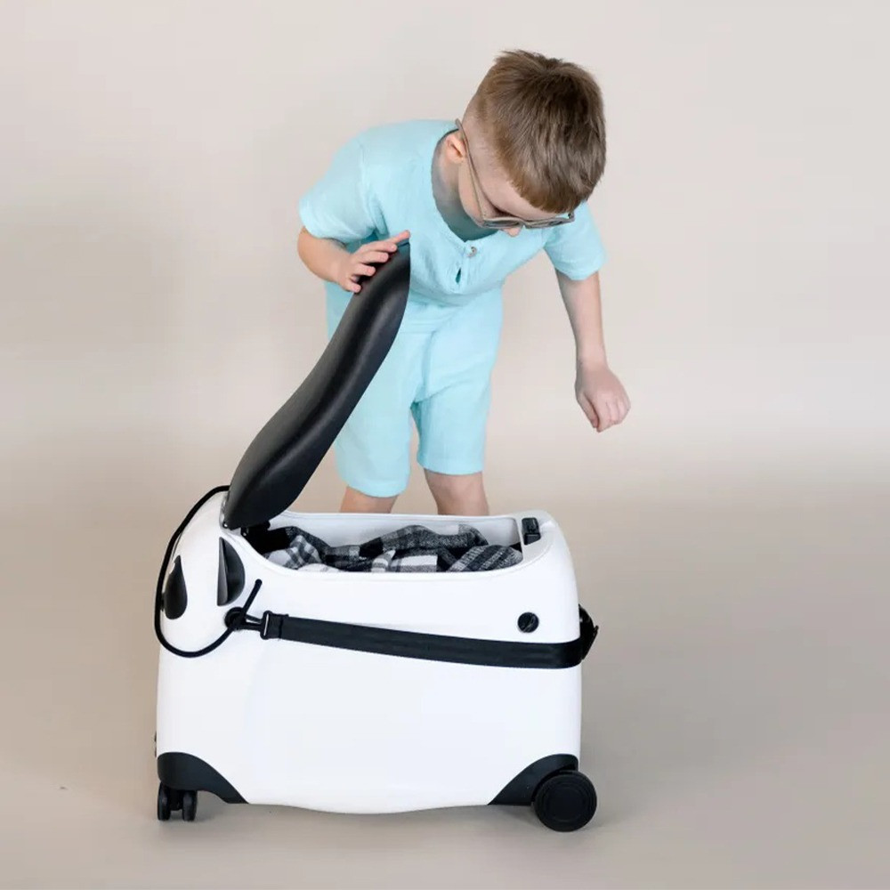 Tento dětský kufřík s motivem pandy na kolečkách není jen zavazadlem, ale i zdrojem zábavy. Děti ho snadno táhnou za sebou a mohou si na něj i sednout, když čekají – díky tomu je každá chvíle cestování zábavná.