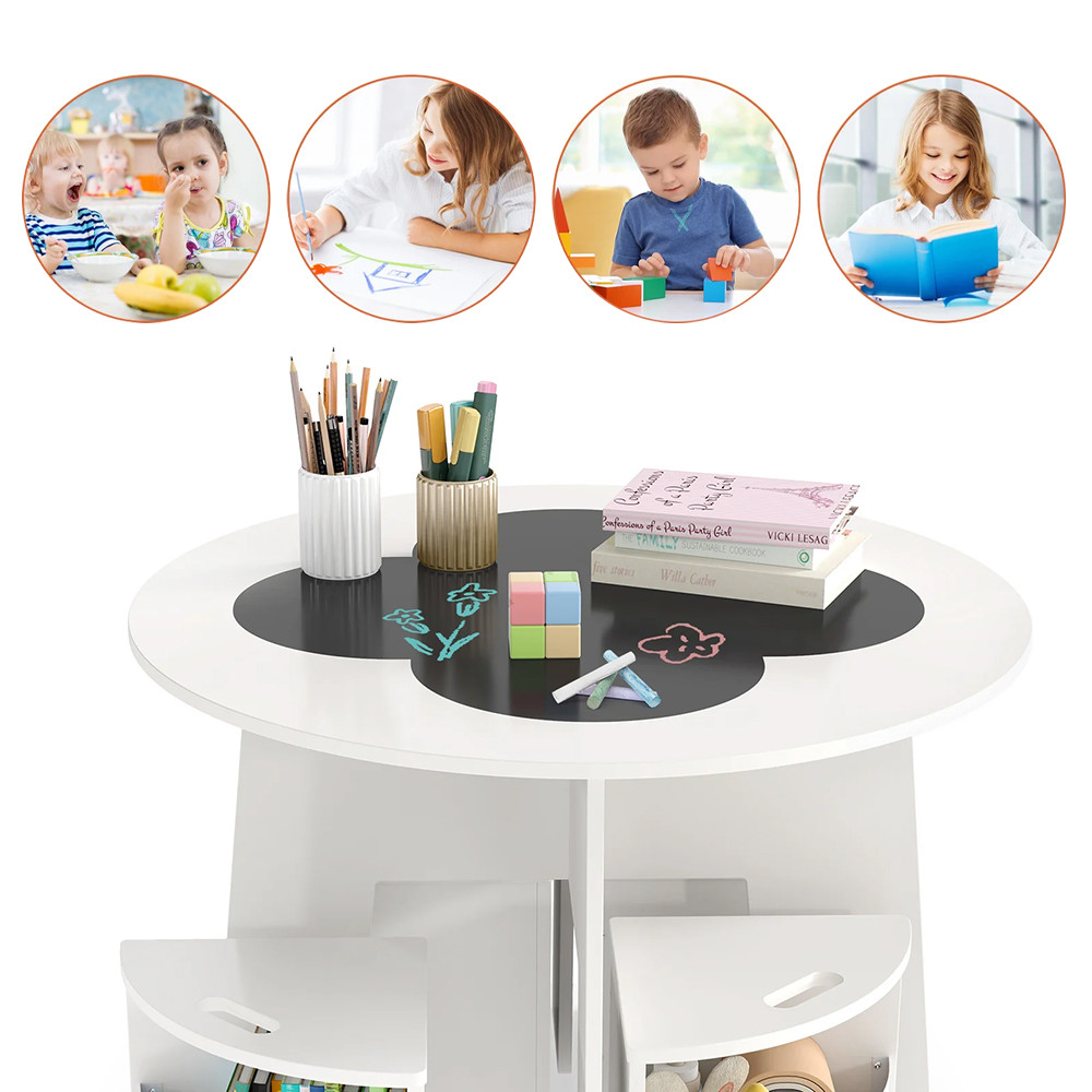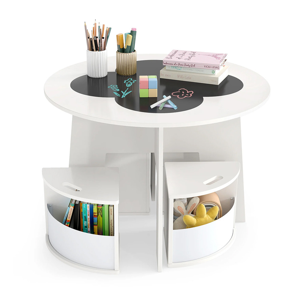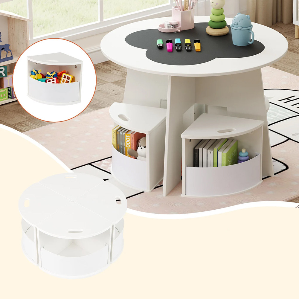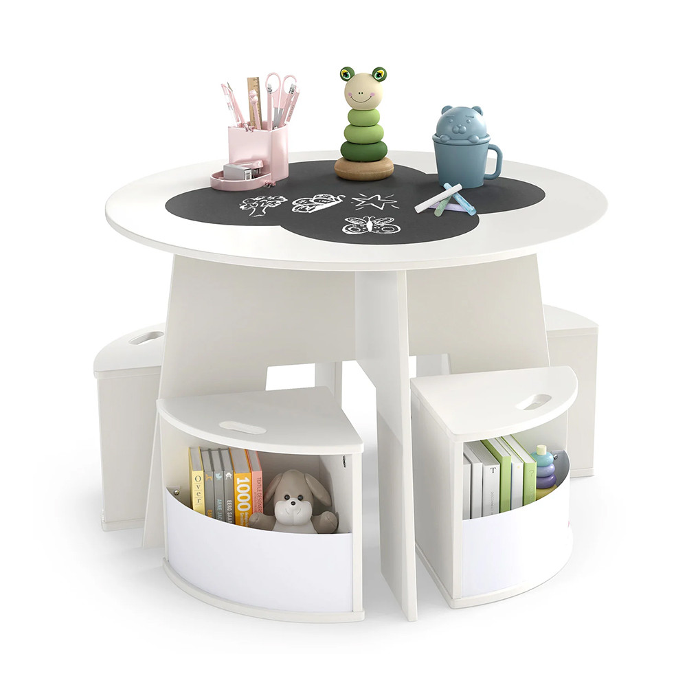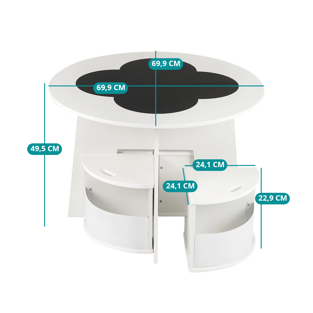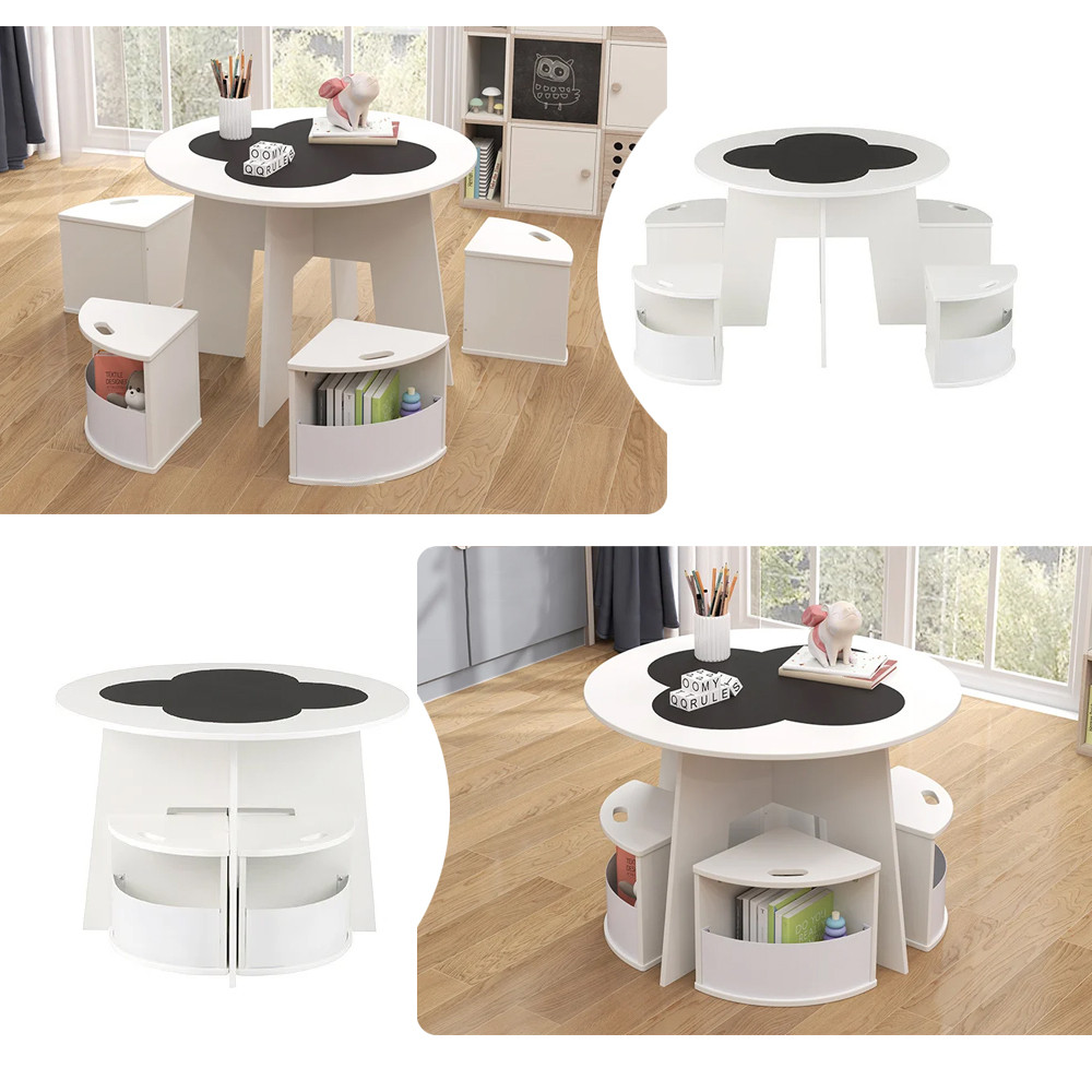Ideální místo pro vybarvování, modelování nebo hraní společenských her. U kulatého stolu se pohodlně usadí čtyři děti, takže společné hry a tvořivé chvíle se stanou přirozenou součástí dne.