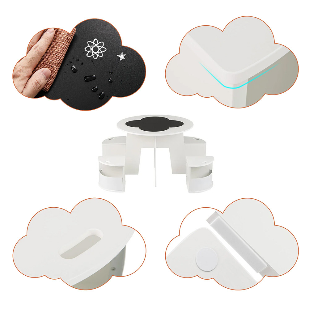 Po použití lze stoličky snadno zasunout pod stůl, takže nezabírají zbytečně místo. V zabudovaných úložných prostorech rychle zmizí knihy, kreslící potřeby a menší hračky, když chcete uklidit.
