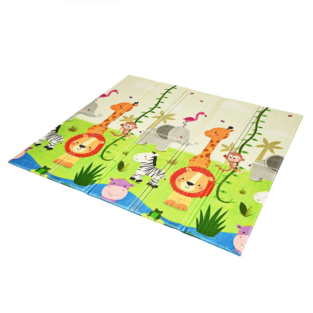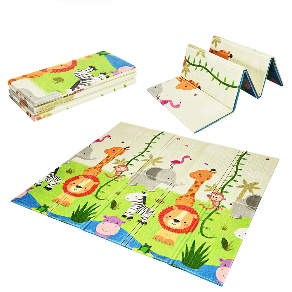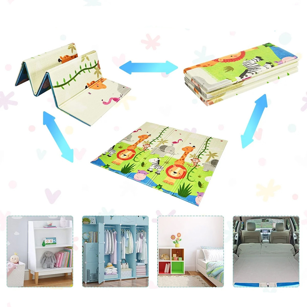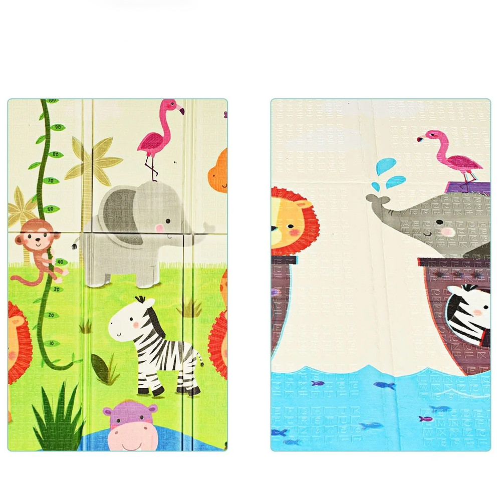 Hrací podložka o rozměrech 200 × 180 cm nabízí dostatek prostoru, kde si vaše miminko může volně plazit, šplhat a hrát. 1,4 cm silná pěnová vrstva účinně tlumí pády a chrání kolena a lokty.