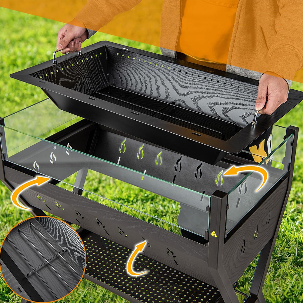 Konstrukce grilu 3 v 1 umožňuje jeho použití pro klasické grilování, táborové vaření i vytvoření příjemného ohniště, takže nabízí flexibilní řešení pro každou příležitost.