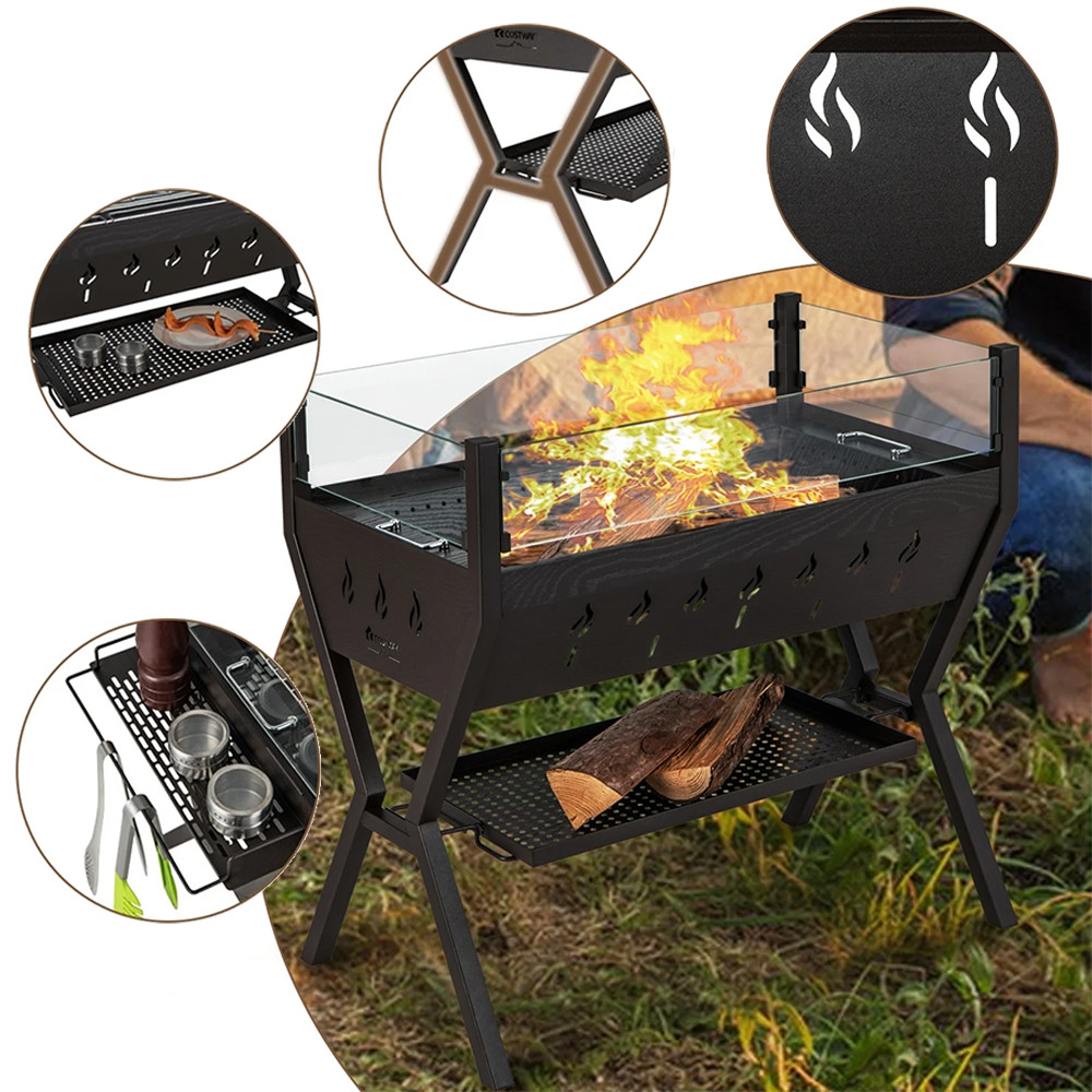 - Gril na dřevěné uhlí 3 v 1: gril, varná stanice, ohniště