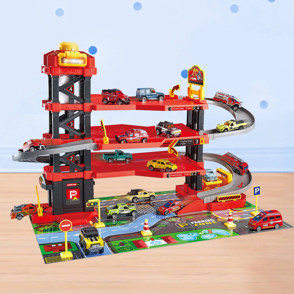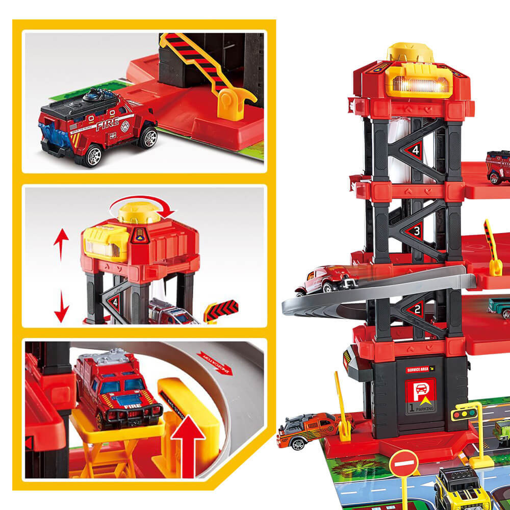 Díky vícepatrové konstrukci garáže si děti užijí hodiny vzrušující hry. Autíčka mohou plynule jezdit mezi patry, takže akce nikdy nekončí – ať už je potřeba hasit požár nebo řídit dopravu.