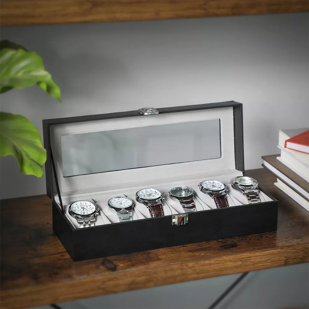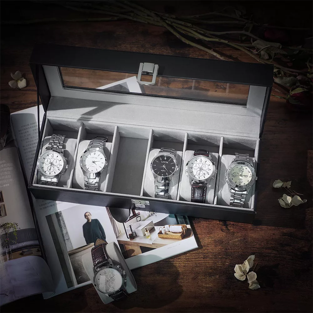 Díky průhlednému skleněnému víku jsou vaše hodinky vždy viditelné a chráněné před prachem. Můžete si snadno vybrat své každodenní nošení na první pohled, zatímco vaše časoměřiče jsou elegantně uspořádány.