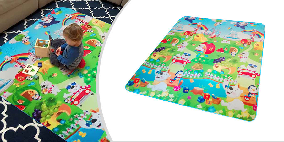 Hrací podložka s barevnými a roztomilými motivy pomáhá dětem rozpoznávat tvary, zvířátka a barvy. Živé vzory stimulují vizuální vnímání, rozvíjejí kreativitu a podporují koordinaci pohybů. Pro nejmenší poskytuje ideální místo na lezení a první pohyby, zatímco starší děti mohou podložku využít jako hrací prostor.