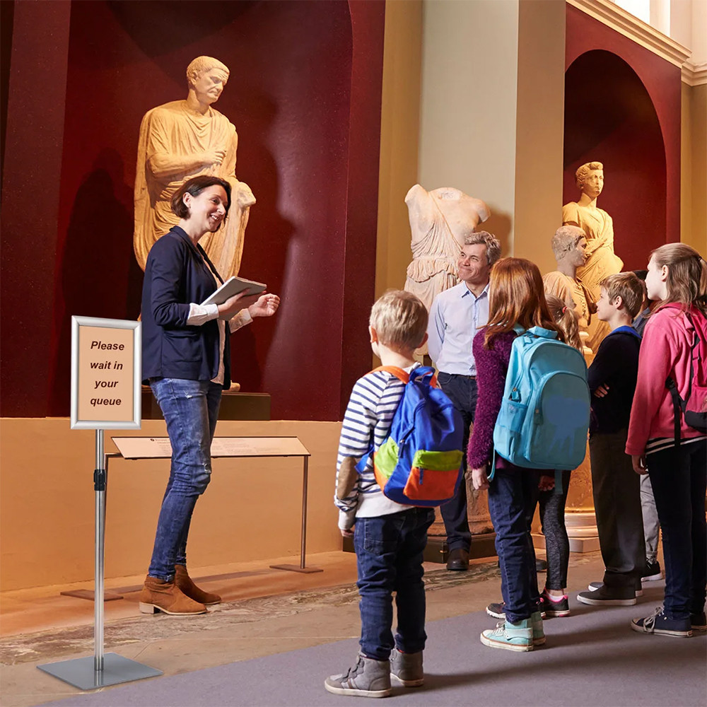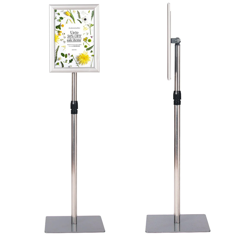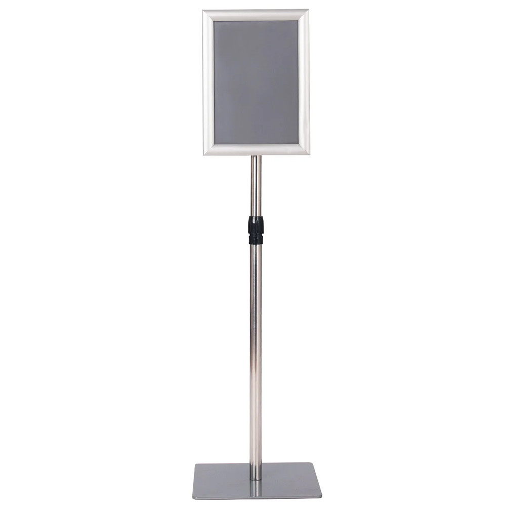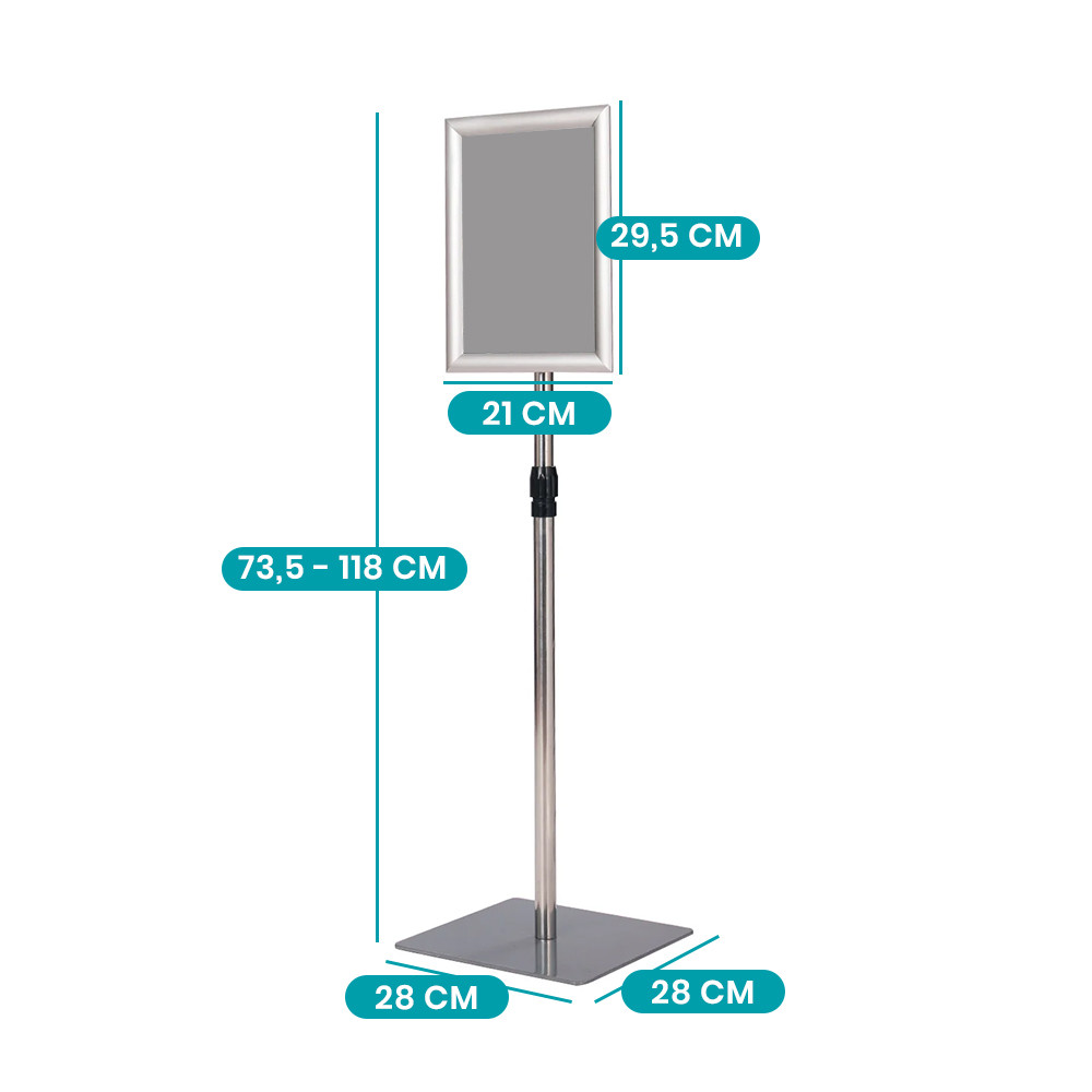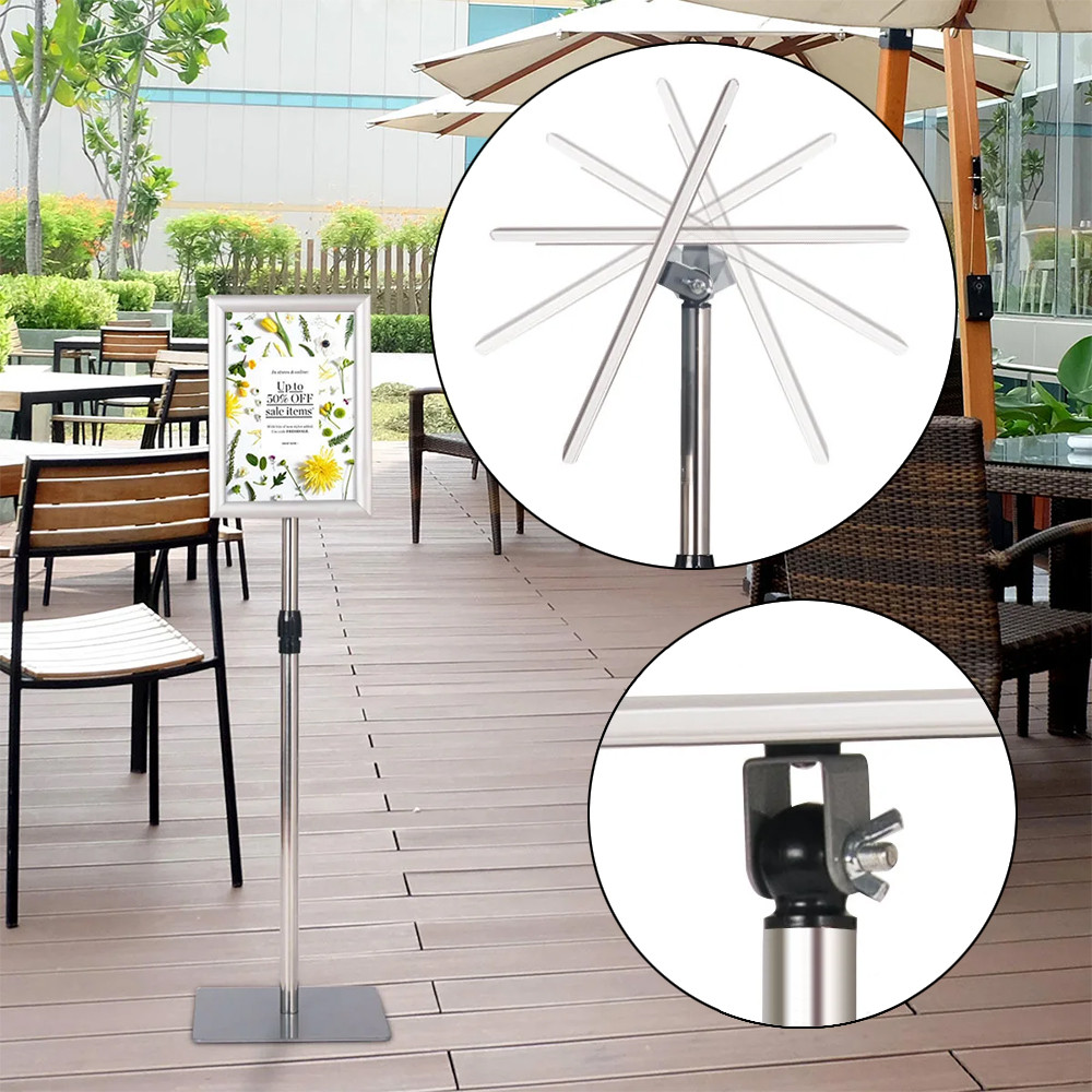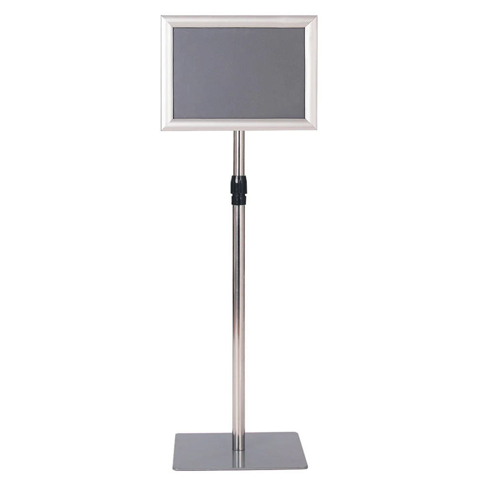 Tento informační stojan je perfektní volbou pro obchody, výstavy a akce, kde je důležitý čistý a organizovaný vzhled. S hliníkovým rámem a nerezovou konstrukcí nabízí stabilní a elegantní řešení pro prezentaci reklam.