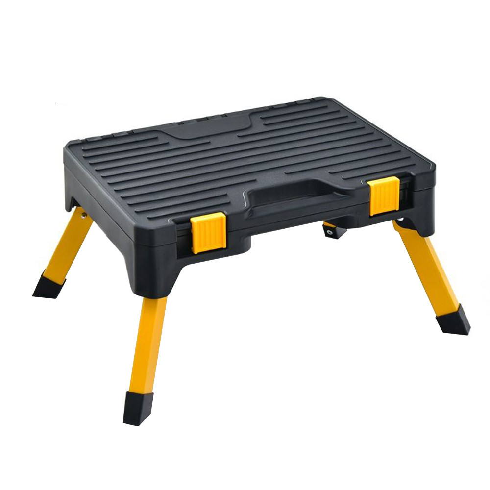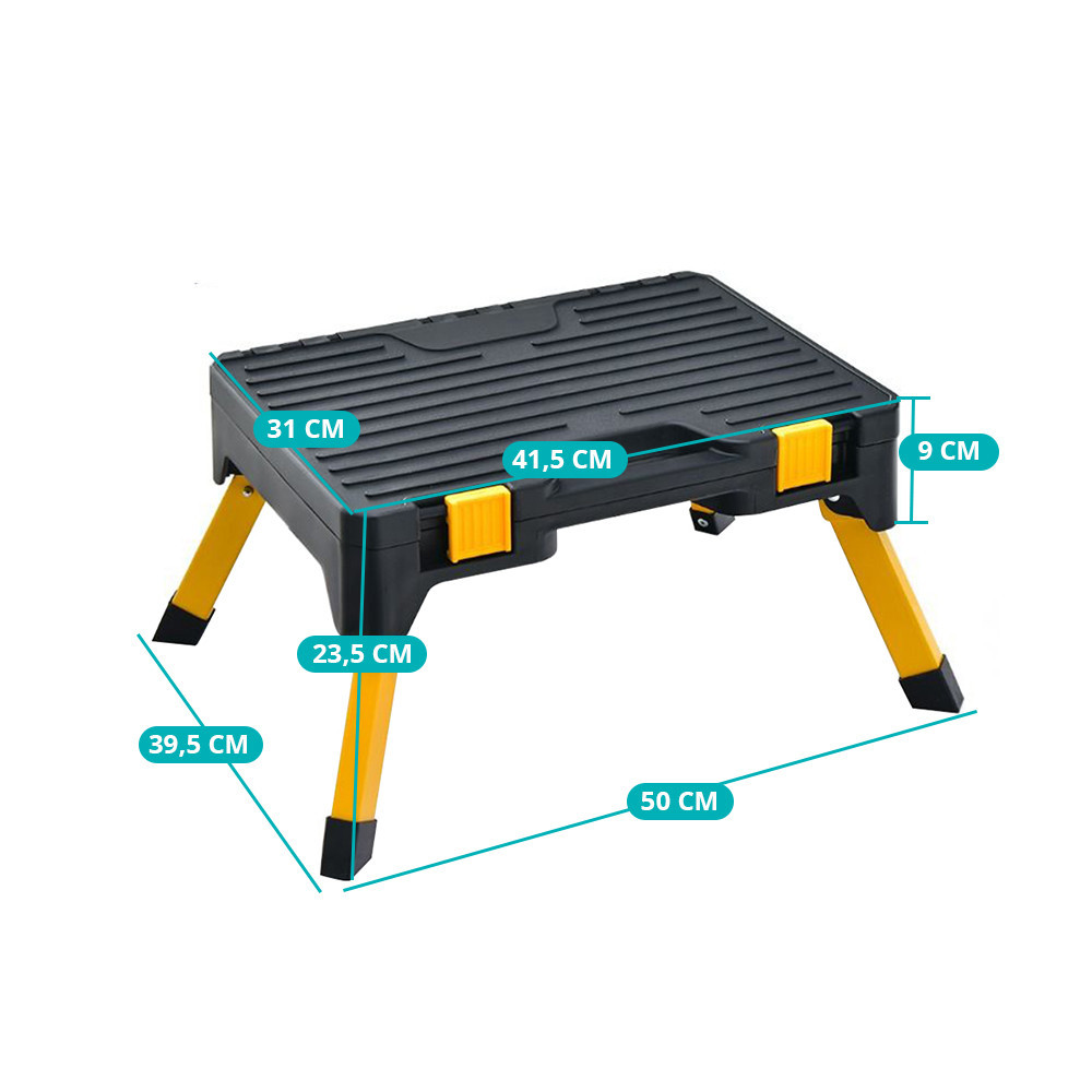 Robustní kovový rám poskytuje vysokou nosnost, zatímco protiskluzové nohy a texturovaný povrch pro stání zajišťují bezpečné postavení. Podporuje až 150 kg, což z něj činí spolehlivého společníka pro každodenní použití.