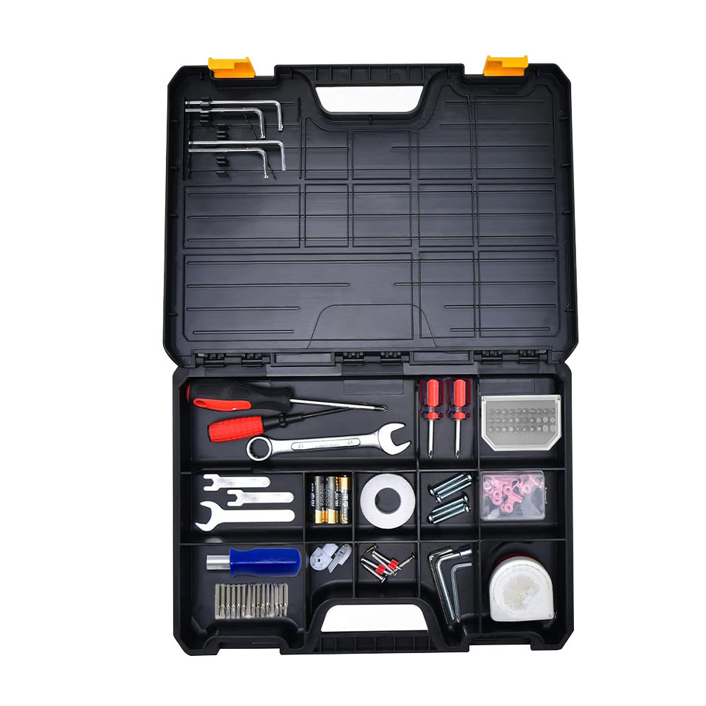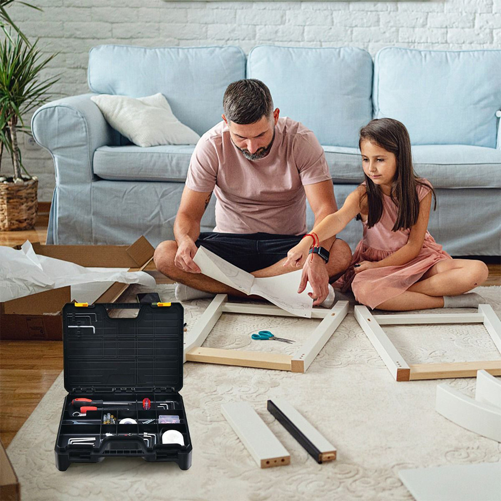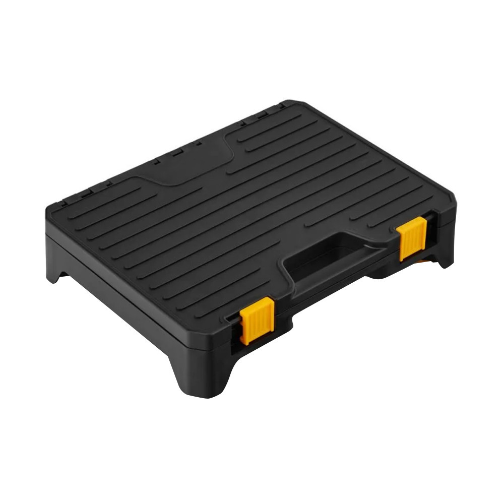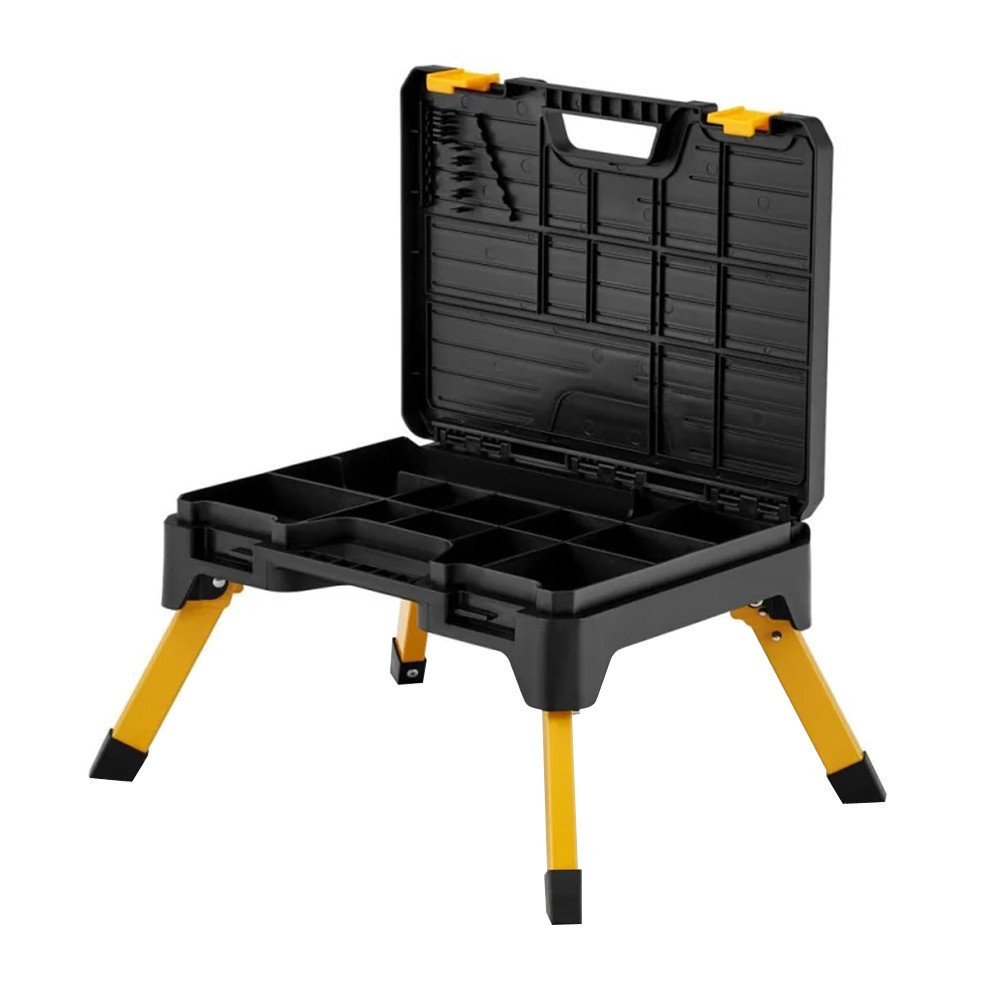 Její skládací konstrukce zabírá minimální prostor a integrovaná rukojeť umožňuje snadnou přenosnost. Zámek zajišťuje, že nástroje během přepravy nevypadnou a zabraňuje náhodnému otevření. Tímto způsobem ji můžete snadno vzít do garáže, dílny, karavanu nebo dokonce na venkovní úkoly.