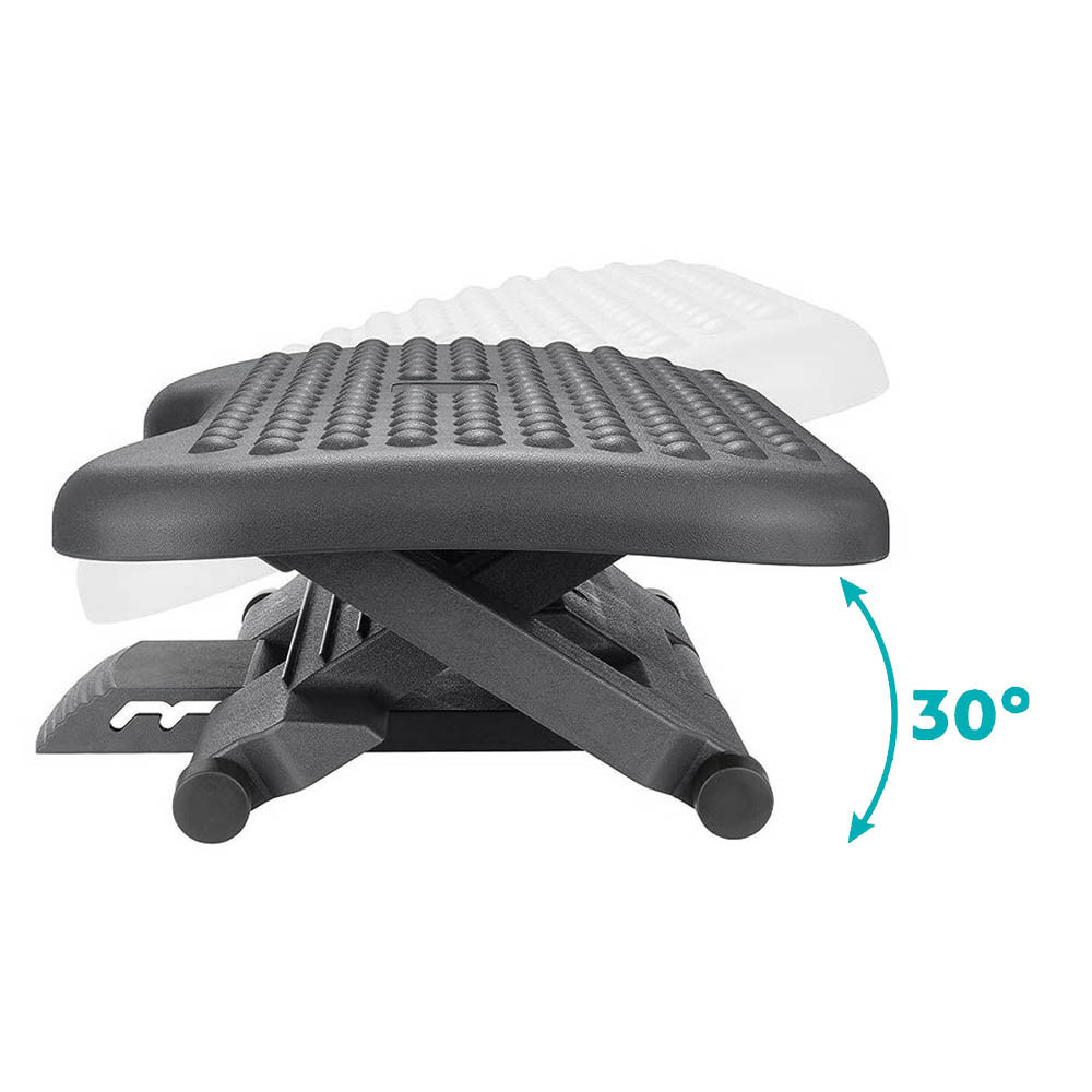 Podnožku lze nastavit do tří různých výšek (11 cm, 14 cm, 17 cm), takže si ji můžete přizpůsobit podle svých potřeb. Kromě toho lze sklon naklonit až do 30°, což vám umožní najít nejpohodlnější polohu pro práci i odpočinek.