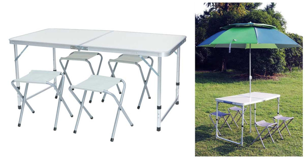 Mobilní stůl se židlemi je perfektní volbou na výlety, kempování i domácí zahradní použití. Díky skládací konstrukci si jej snadno vezmete kamkoliv s sebou.