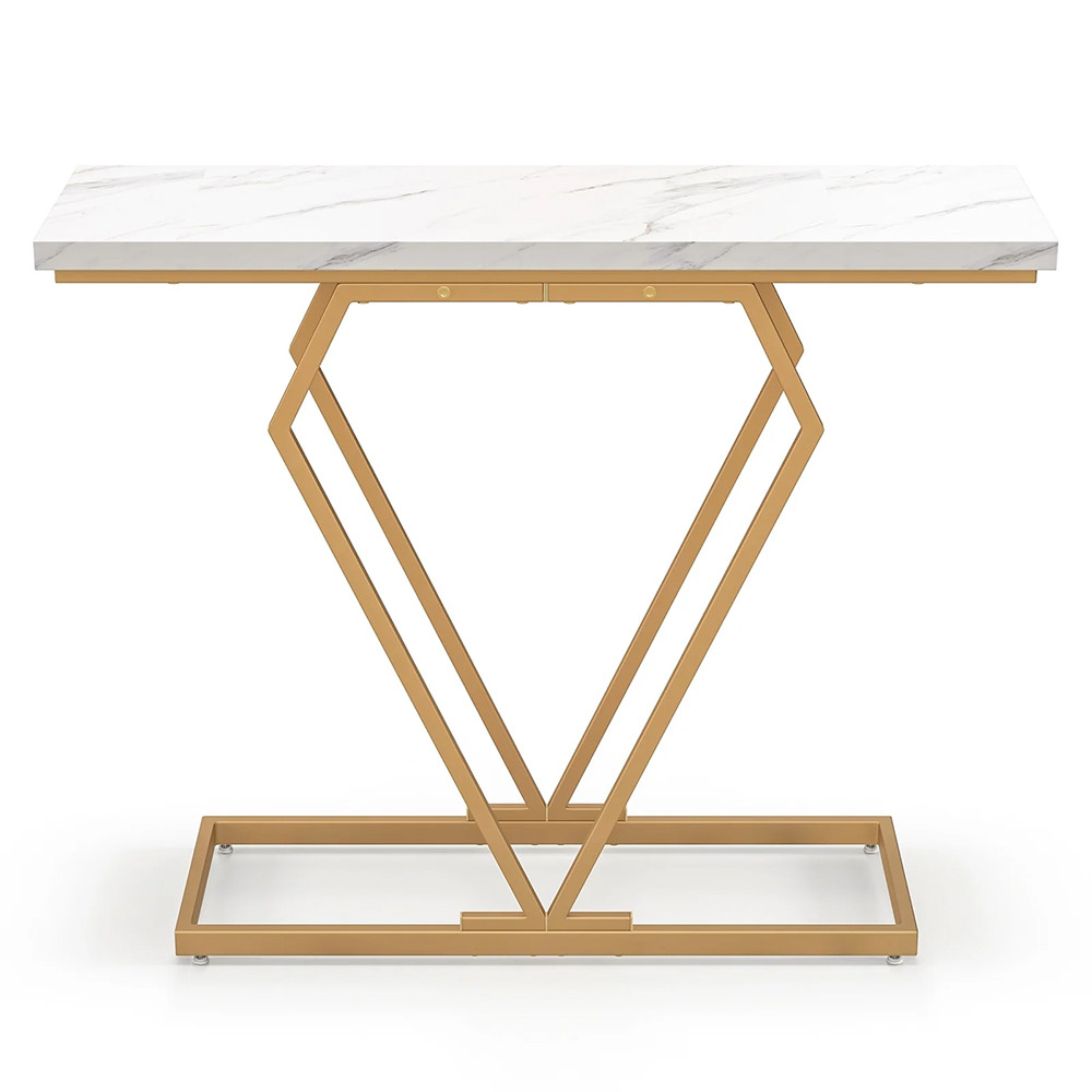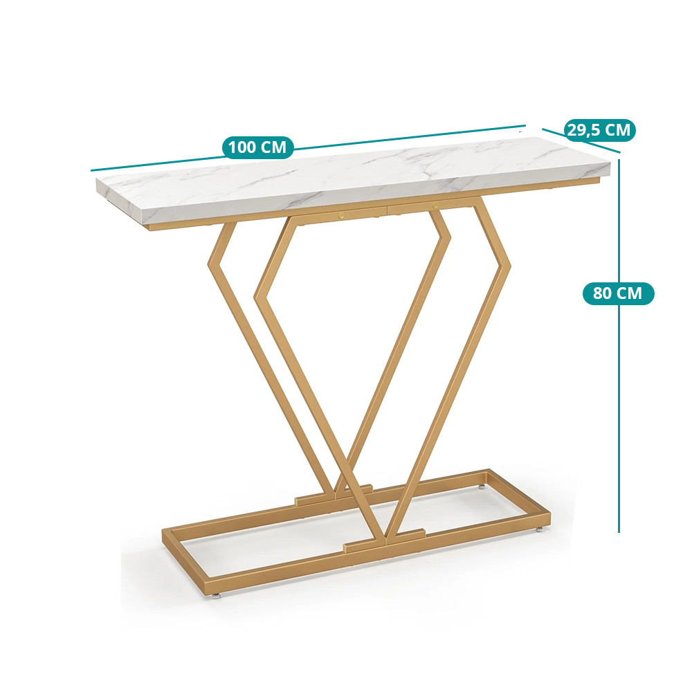 Bílý povrch s efektem umělého mramoru a zlatě zbarvená kovová konstrukce snadno vytvoří upravený a elegantní dojem. Skvěle ladí s moderním, glam nebo jednoduchým interiérem a krásně zvýrazní dekorace.