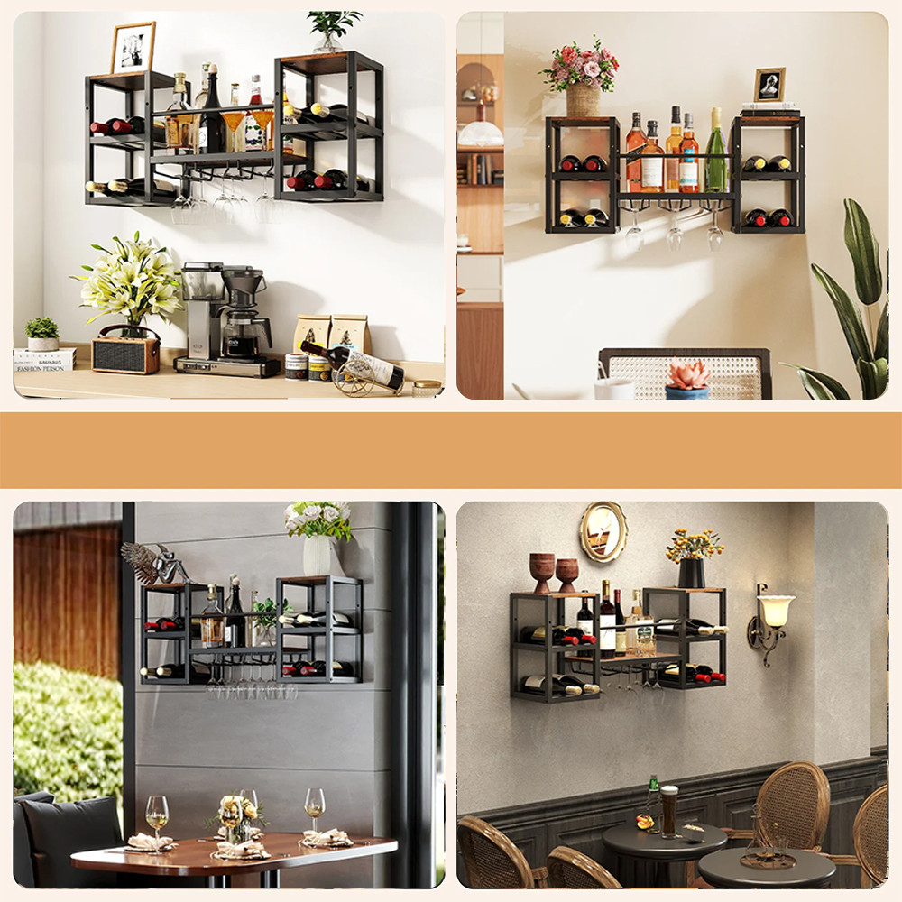 - 1x nástěnný stojan na víno s držákem na sklenice