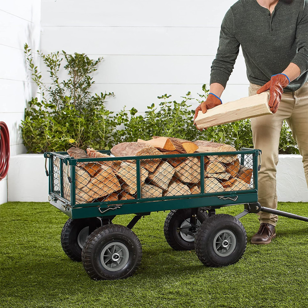 Tento kovový zahradní vozík je ideálním pomocníkem při práci na zahradě – skvěle poslouží pro přepravu dřeva, zeminy nebo jiného nákladu. Mřížkovaná konstrukce zajišťuje stabilní převoz, zatímco sklopné bočnice usnadňují nakládání i vykládání těžších předmětů.