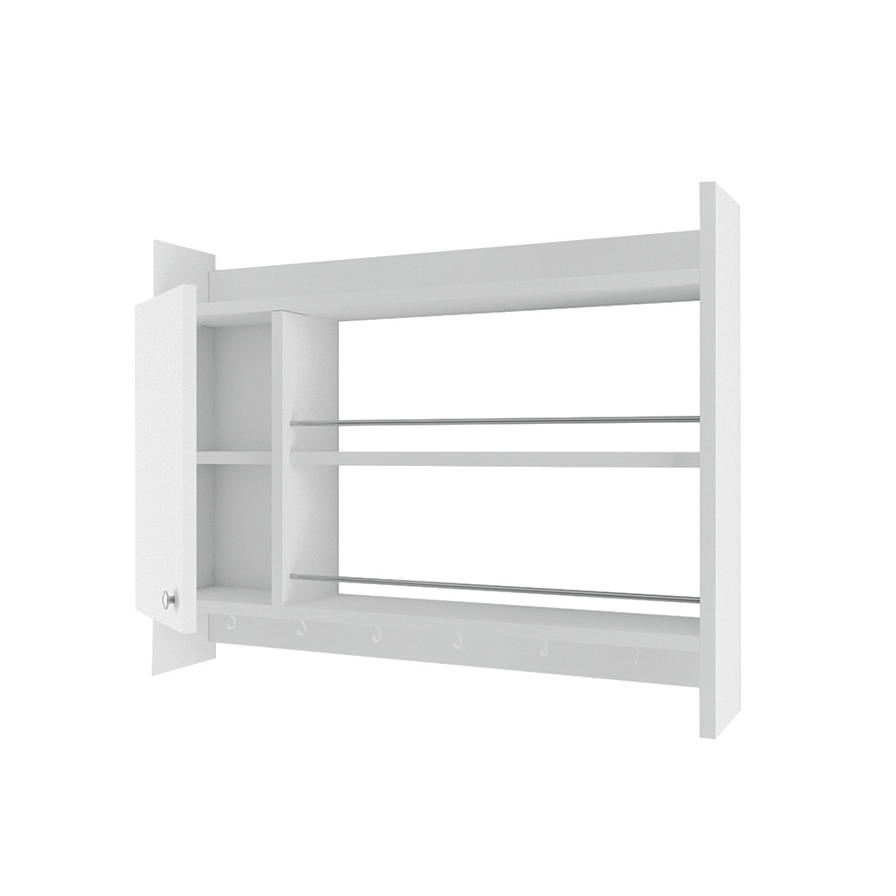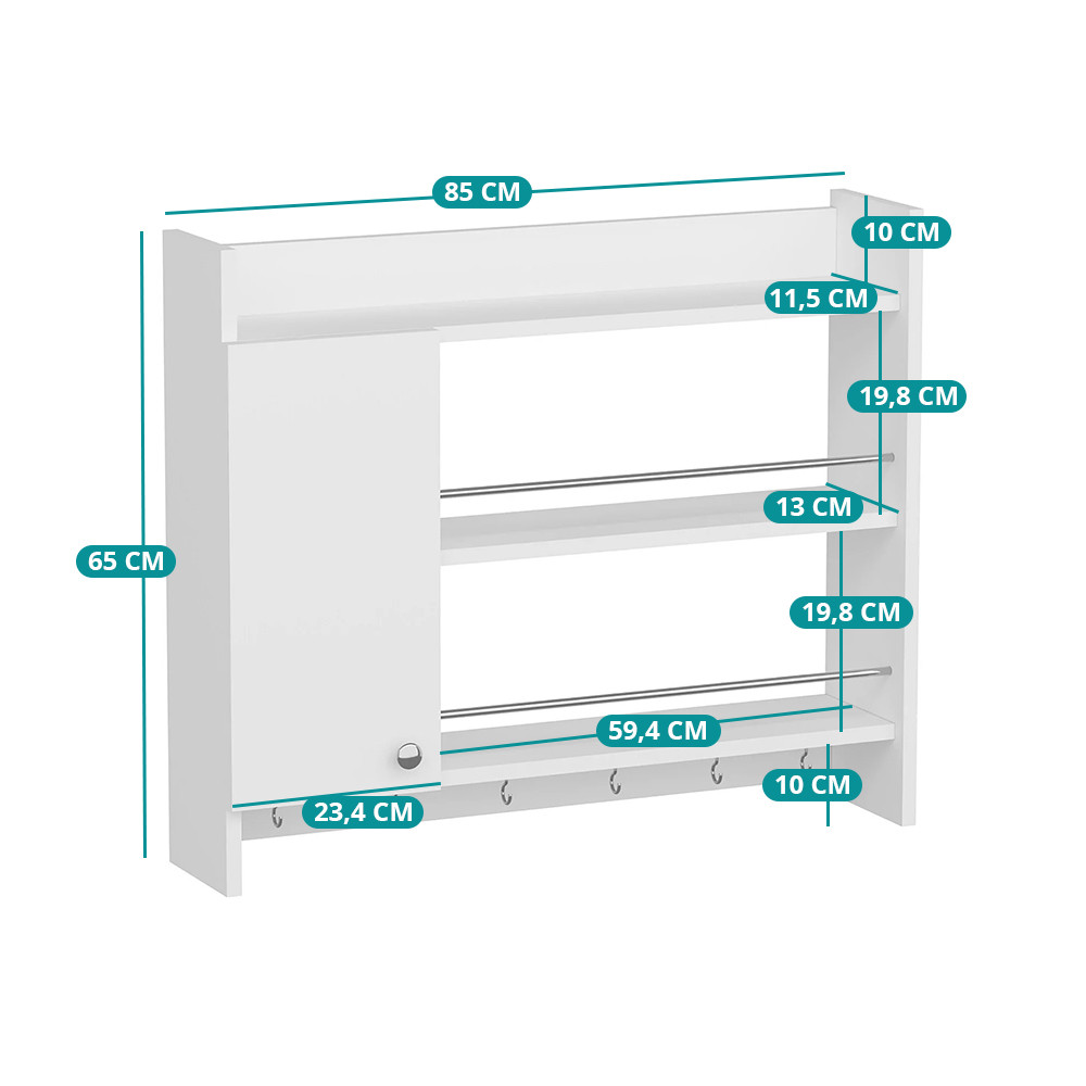 Poličky a dolní háčky nabízejí praktické úložné možnosti, zajišťující, že každý předmět má své místo.