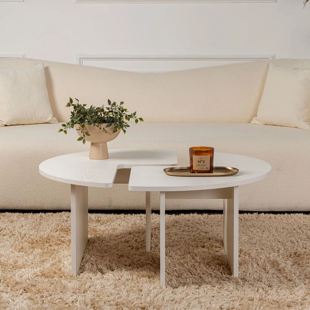 Kulatý tvar nabízí přátelské uspořádání a poskytuje dostatek prostoru pro nápoje, knihy nebo dekorace. Přirozené místo pro chvíle s rodinou a přáteli.