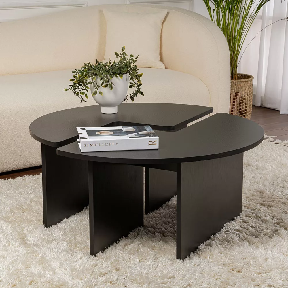 Kulatý tvar vytváří přátelské uspořádání a zároveň poskytuje dostatek prostoru pro nápoje, knihy nebo dekorace. Je to ideální volba pro relaxaci a zábavu hostů.