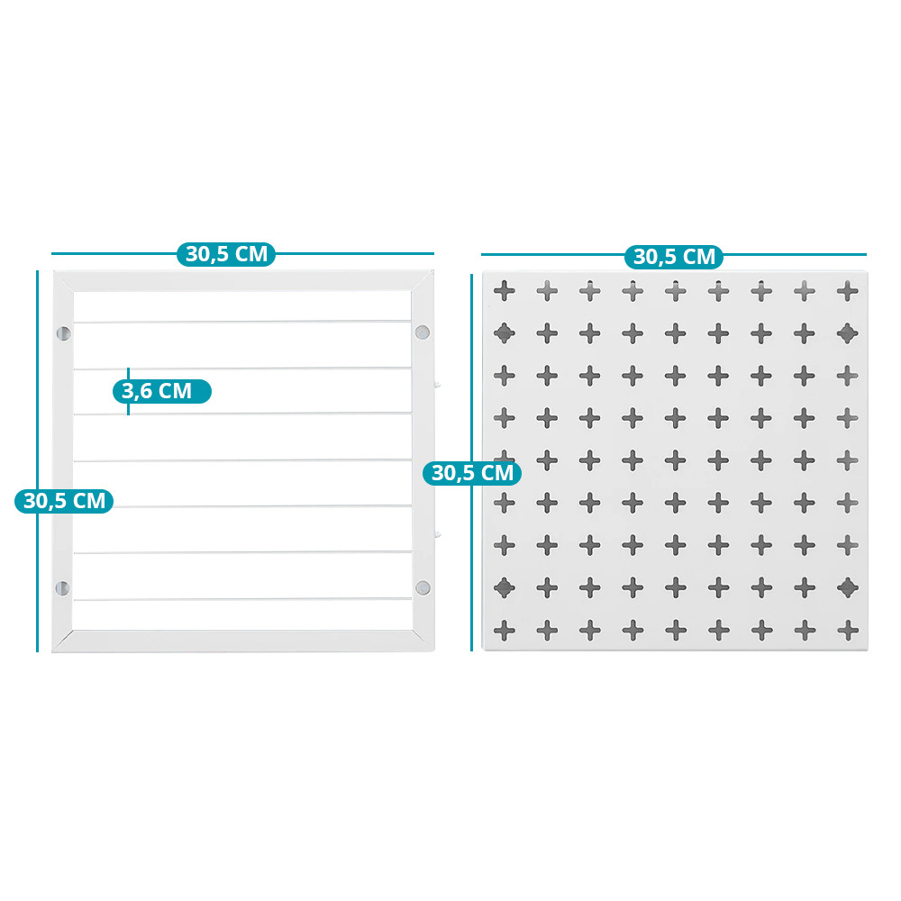 Systém s perforovanou deskou vám umožňuje umístit úložné jednotky, háčky a magnety podle potřeby. Design lze snadno přizpůsobit měnícím se návykům v ukládání.