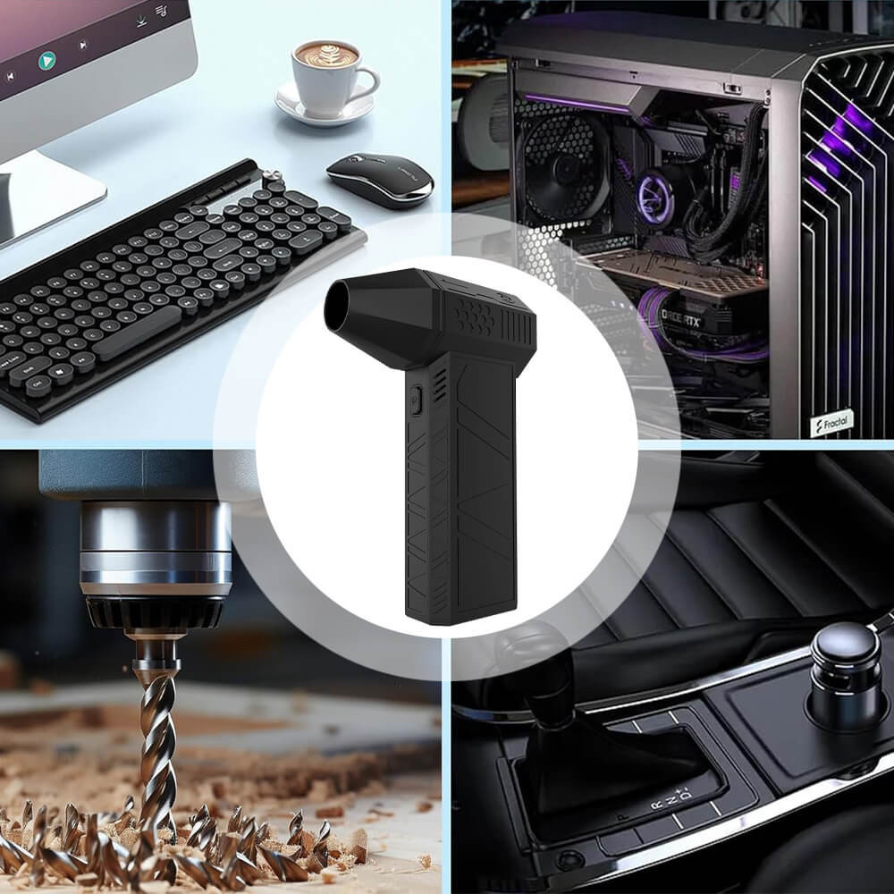 Navzdory svým kompaktním rozměrům nabízí Mini Turbo Ventilátor mimořádně silný výkon, protože pracuje při rychlosti 130 000 otáček za minutu. Tento intenzivní proud vzduchu zajišťuje efektivní chlazení, ať už během horkých letních dní, nebo v uzavřených, dusných prostorech. Díky malé velikosti je snadno přenosný, takže si ho můžete vzít kamkoli s sebou, když potřebujete čerstvý vzduch.