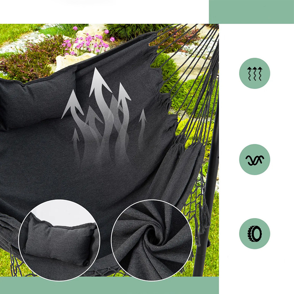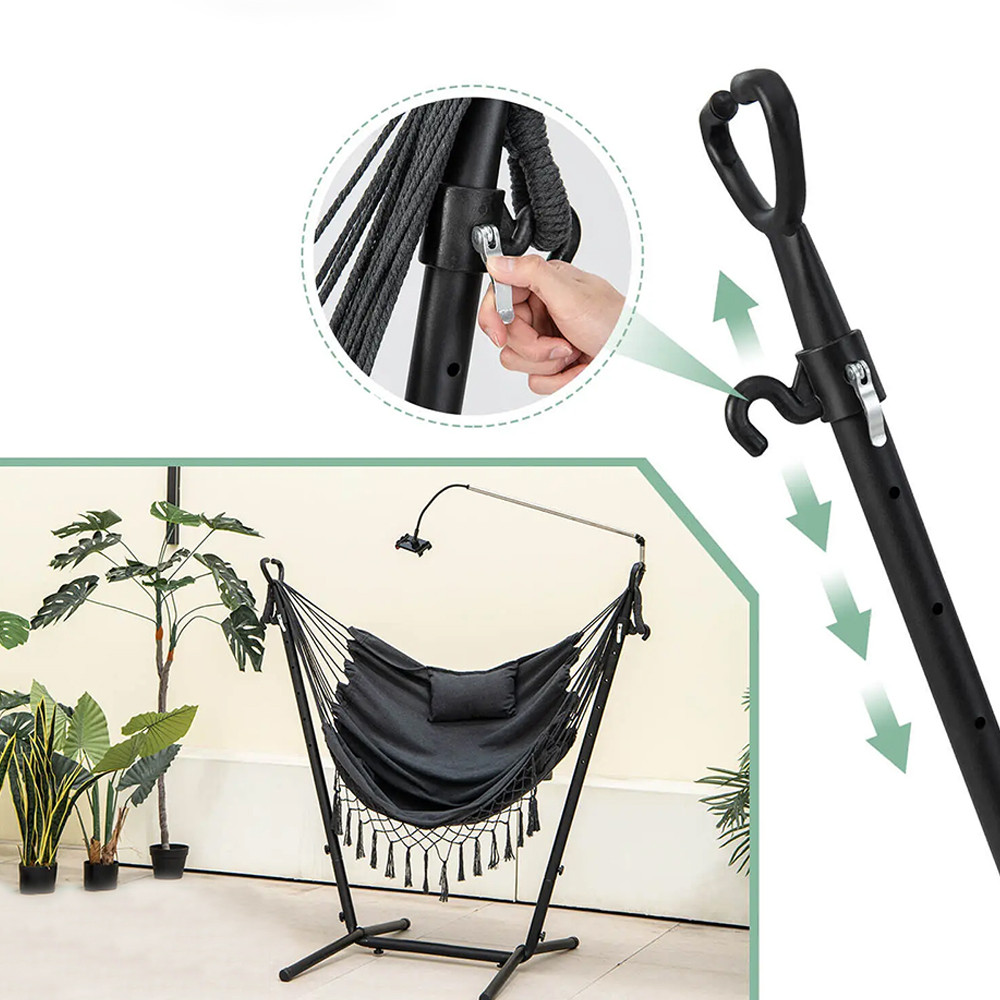 Díky rychloupínacím háčkům lze závěsné křeslo nastavit na 6 různých výškových úrovní. Snadno si ho přizpůsobíte podle svých potřeb, ať už ho používáte k odpočinku nebo relaxaci.