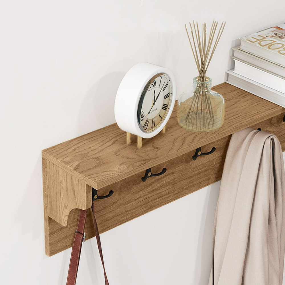 Tato nástěnná police je ideální volbou, pokud chceš mít své každodenní věci přehledně uspořádané a zároveň ušetřit místo doma. Věšák se 6 háčky poskytuje praktický prostor pro kabáty, tašky nebo doplňky, zatímco horní police nabízí další místo pro dekorace či menší předměty.