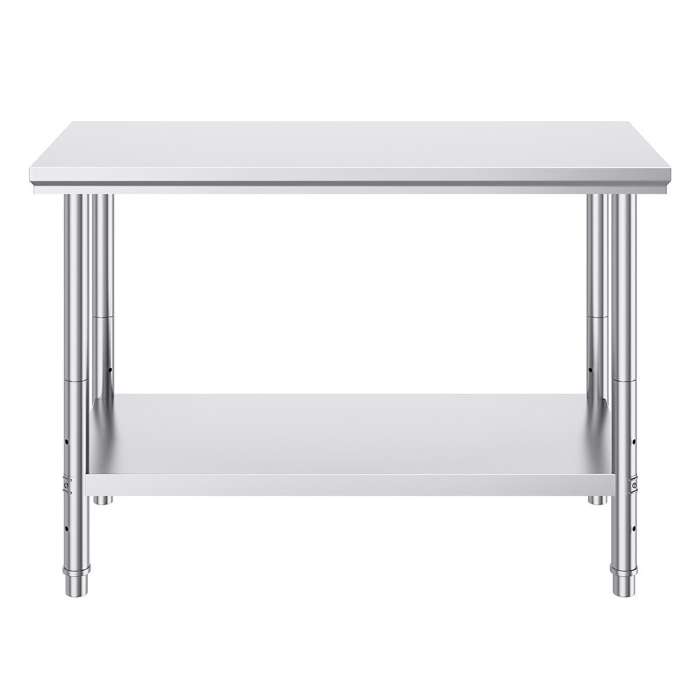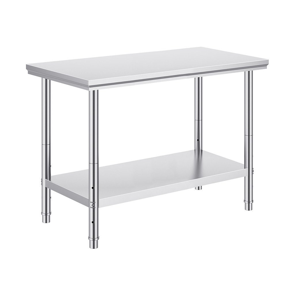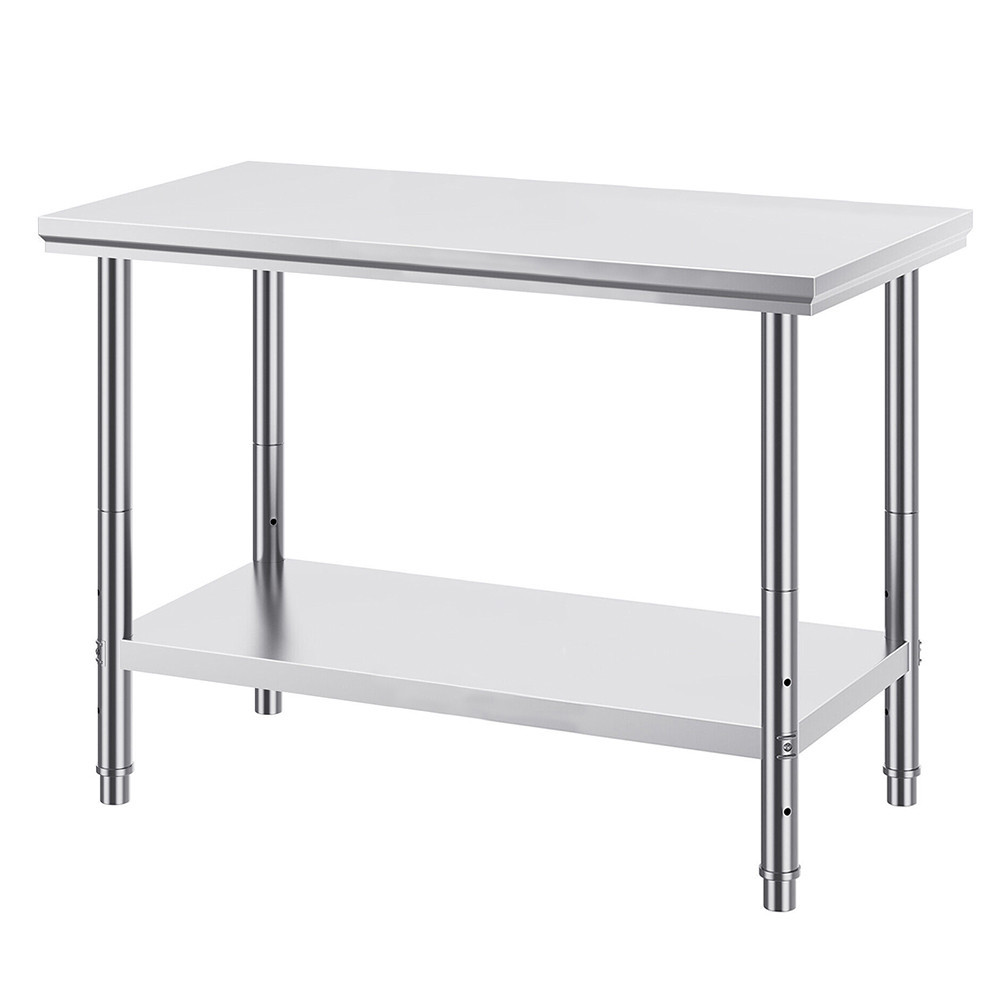Rezavé, nestabilní povrchy nejen ztěžují práci, ale mohou také ohrozit hygienu potravin. Pokud hledáte pracovní plochu, která je odolná, snadno se udržuje a vydrží kuchyňské opotřebení, tento stůl je ideální volbou. Stůl má rozměry 120 × 60 × 78,5 cm. Deska stolu o tloušťce 6 cm je robustní a materiál z nerezové oceli 201 (SS201) zajišťuje dlouhou životnost. Spodní police je umístěna 13 cm nad zemí a 66 cm od desky stolu, což poskytuje dostatek prostoru pro větší nástroje nebo bedny.