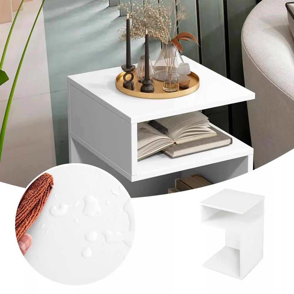 Tělo vyrobené z zesílené nábytkové desky nabízí vynikající nosnost, nepraská a udržuje si stabilitu v průběhu času. Hladké PVC okraje zabraňují poškrábání a chrání před poškozením – navíc se snadno čistí vlhkým hadříkem. Deska stolu o rozměrech 33 × 33 cm je ideální pro umístění květin, lamp nebo dekorací. Její dvě otevřené police jsou perfektní pro časopisy, knihy, telefony nebo drobnosti – udržují váš prostor uklizený a organizovaný.