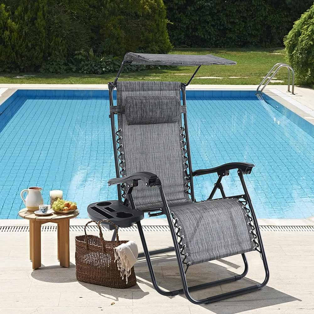 Integrovaná stříška chrání tvář před přímým sluncem, takže si můžeš v klidu číst, relaxovat nebo zdřímnout bez oslnění. Pokud už stín nepotřebuješ, jednoduše ji sklopíš dozadu a užíváš si sluneční paprsky naplno.