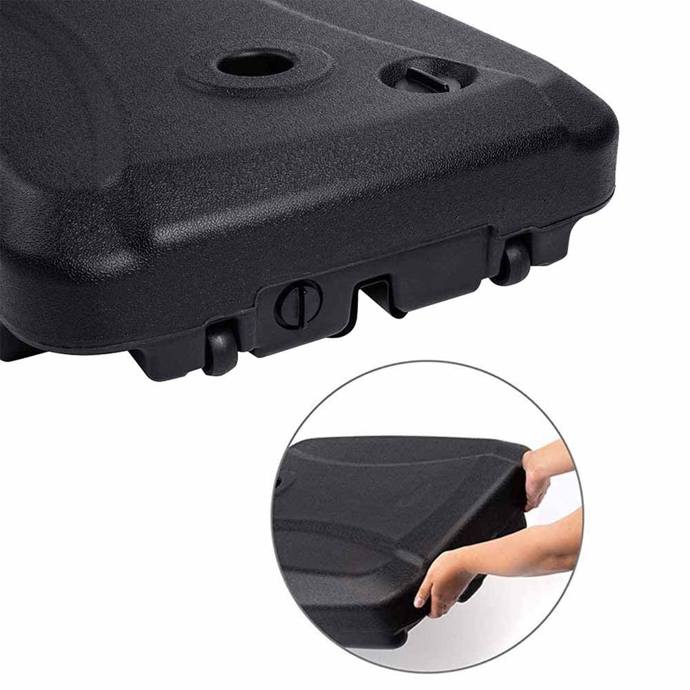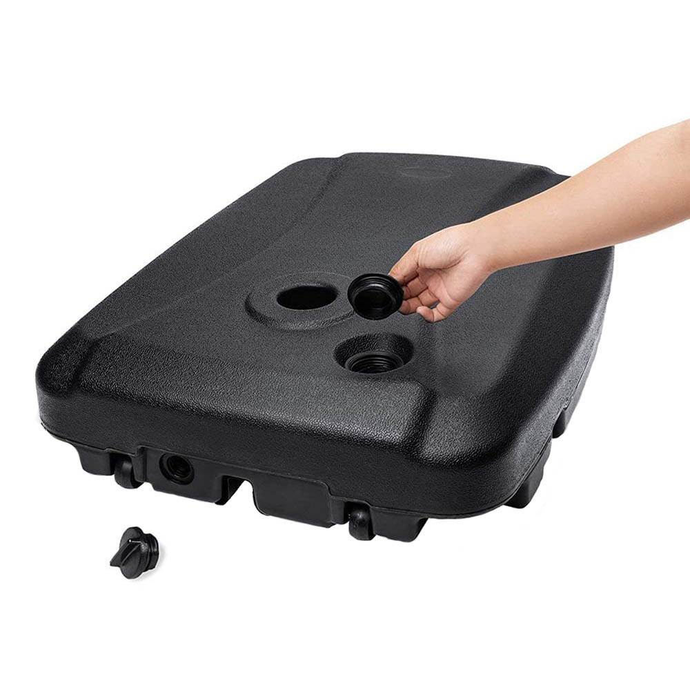 Lehká plastová konstrukce se prázdná snadno přenáší a skladuje, po naplnění vodou nebo pískem však poskytuje skvělou stabilitu. Díky nastavitelné hmotnosti lze přizpůsobit okolnímu prostředí i typu slunečníku.
