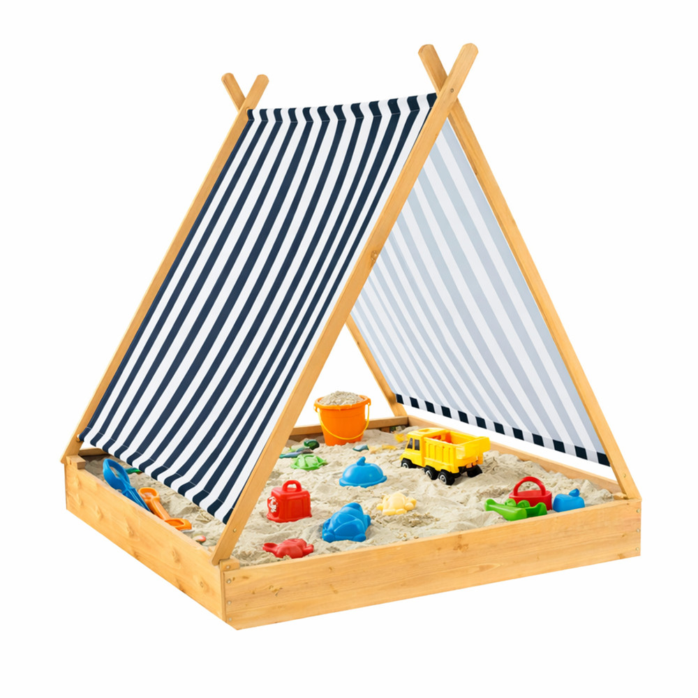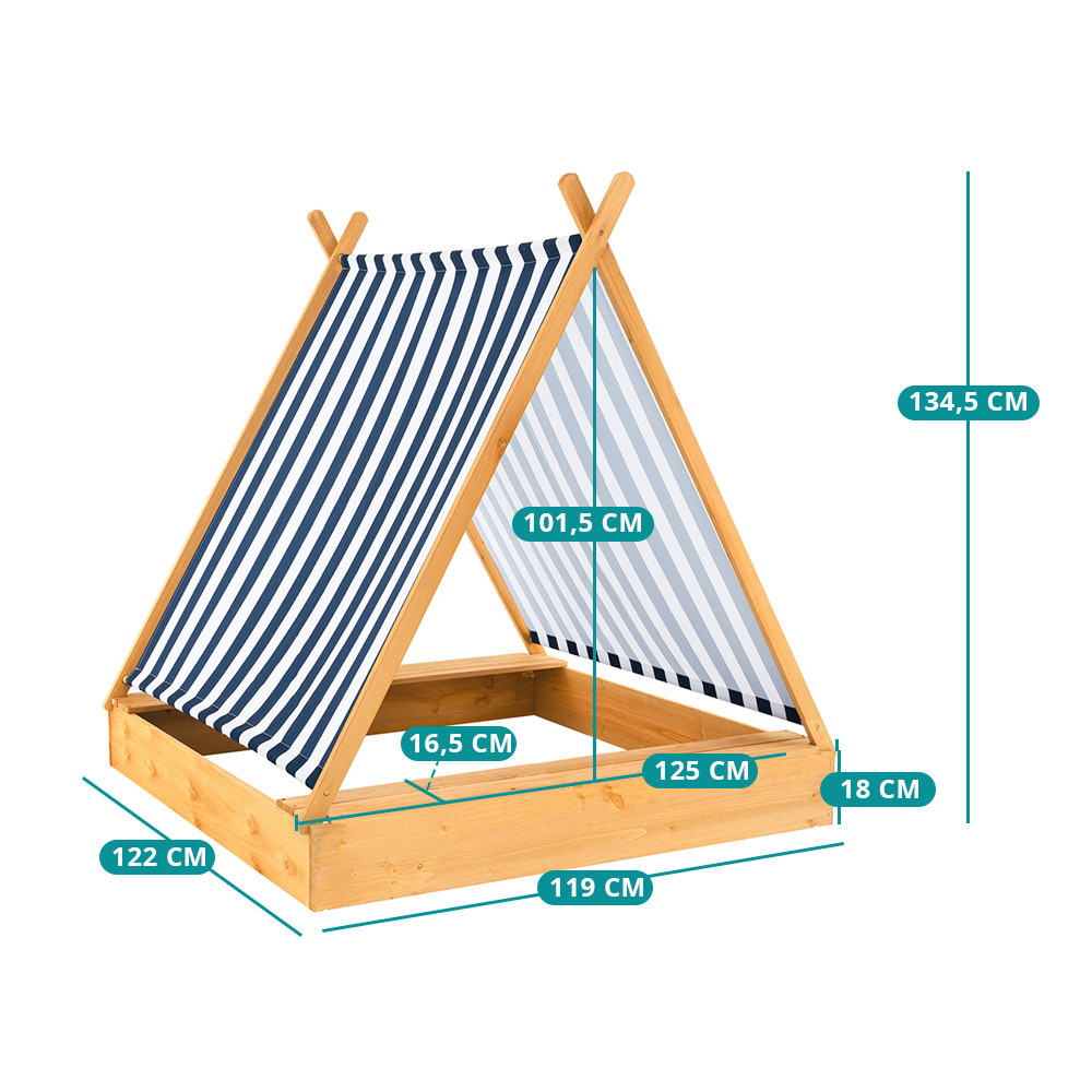 Toto pískoviště s markýzou je skutečným malým útočištěm pro venkovní hry: markýza poskytuje příjemný stín a prostorná plocha je ideální pro kopání, tvarování a stavění hradů z písku. Je to ideální volba, pokud chcete mít na zahradě vítaný koutek pro děti.
