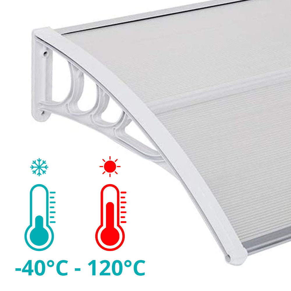 Stříška odolává teplotám od -40 °C do 120 °C, takže ji nepoškodí ani extrémní mráz, ani spalující horko. Polykarbonátový panel je UV odolný, nežloutne a zachovává si svou průhlednost i po dlouhé době používání. Pevná polypropylenová nosná konstrukce zajišťuje stabilitu a spolehlivou ochranu.