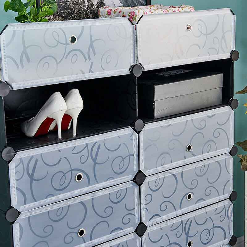 Skříň je vyrobena z odolných plastových panelů a pevných spojovacích prvků, díky čemuž nabízí lehké, ale stabilní řešení pro ukládání obuvi. Díly lze snadno zacvaknout dohromady, což umožňuje rychlou montáž i jednoduchou přestavbu podle potřeby.