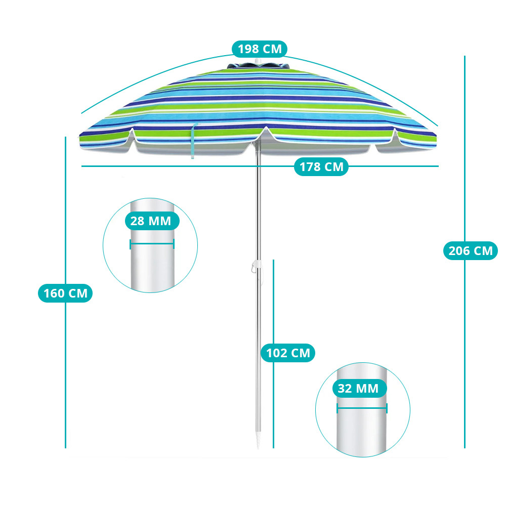 Díky vestavěnému šroubu do písku a hliníkovému upevňovacímu prvku lze slunečník rychle a bezpečně ukotvit, zatímco dvoudílný design a taška na přenášení usnadňují transport a skladování.