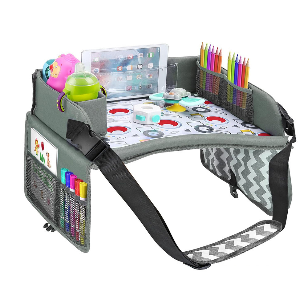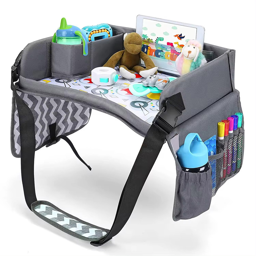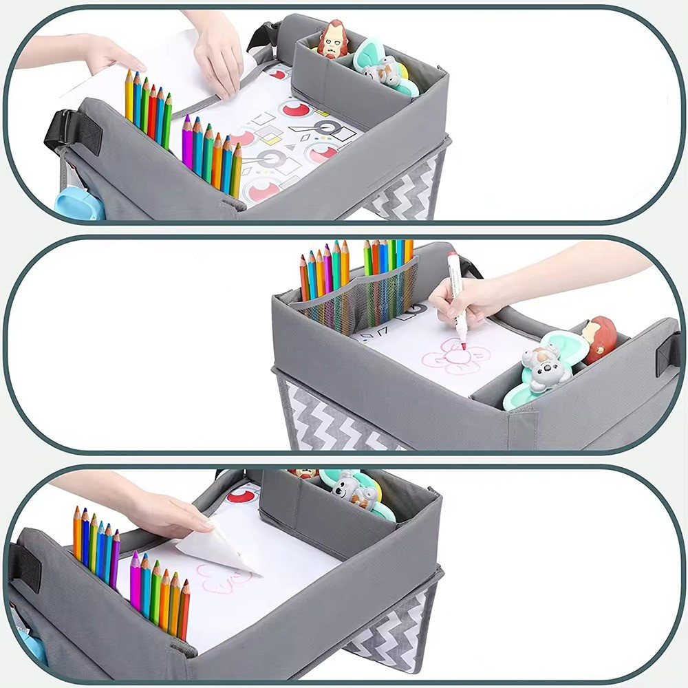 Během delších cest poskytuje přenosný dětský stolek praktické řešení pro uložení hraček, výtvarných potřeb nebo tabletu. Vysoký okraj zabrání pádu předmětů, takže si děti mohou klidně hrát, kreslit nebo sledovat pohádky.