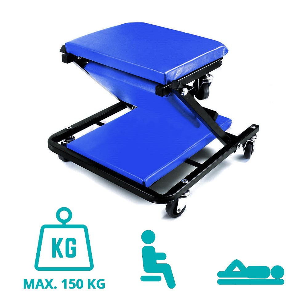 Tato pojízdná židle se skládá do jedinečného tvaru „Z“, což umožňuje dvě různé funkce: může být použita jako pohodlná montážní židle nebo praktická lehačka. Jednoduchá přeměna je rychlá a intuitivní, což šetří čas při práci.