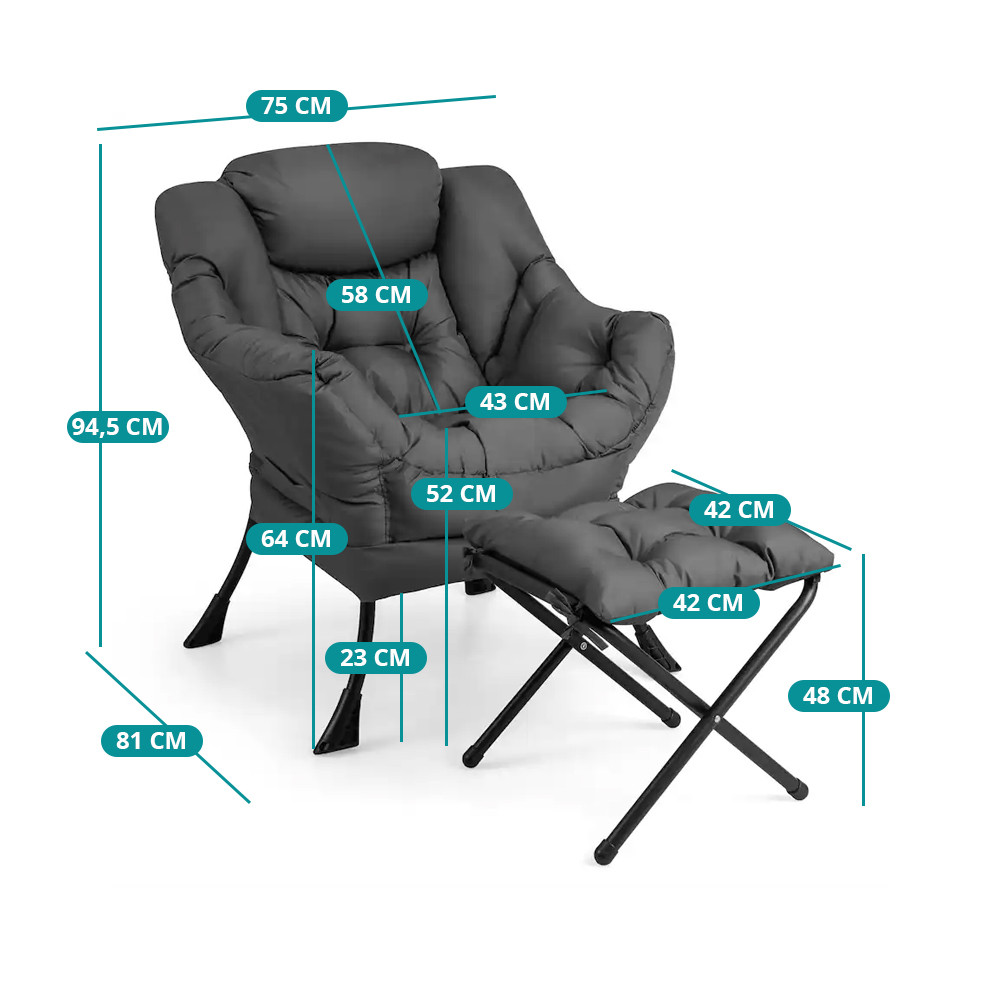 - Rozměry křesla: 75 x 81 x 94,5 cm (Š x H x V)